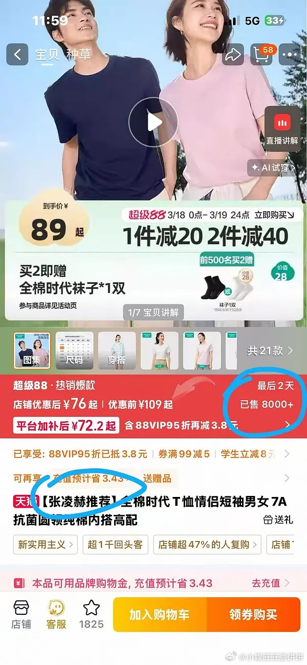 张凌赫全棉时代销量?