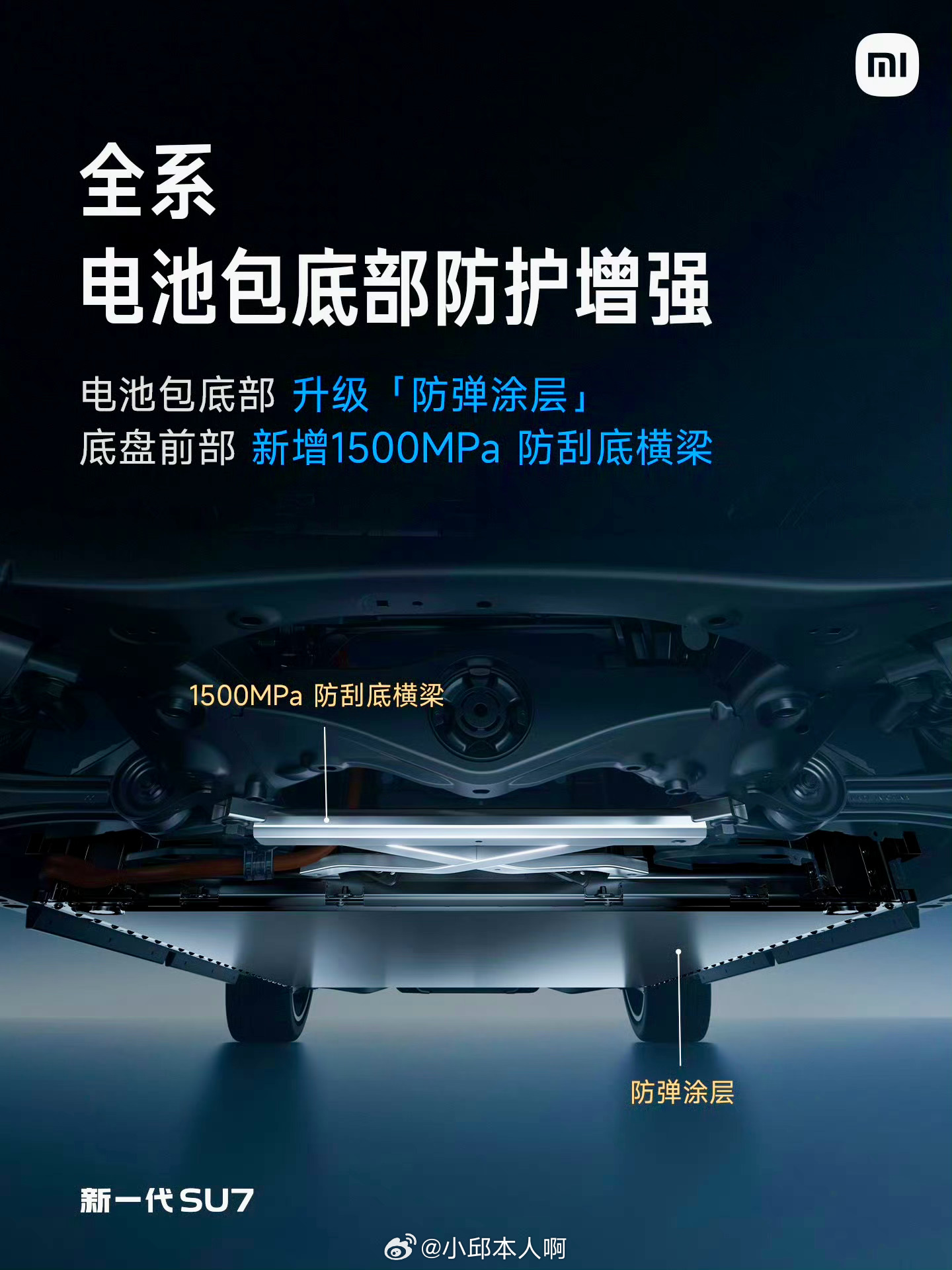 电池方面,完成1230项安全测试,远超国家标准。电池包底部配有1500MPa防刮横梁和防护涂层,抗穿刺能力有明显提升。