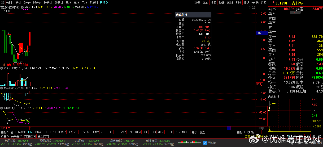 收盘价:7.43 元。涨跌幅: 10.07%。净流入: 3.58亿