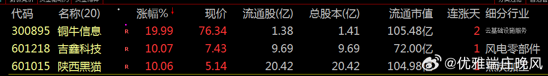 300895 铜牛信息601218 吉鑫科技601015 陕西黑猫