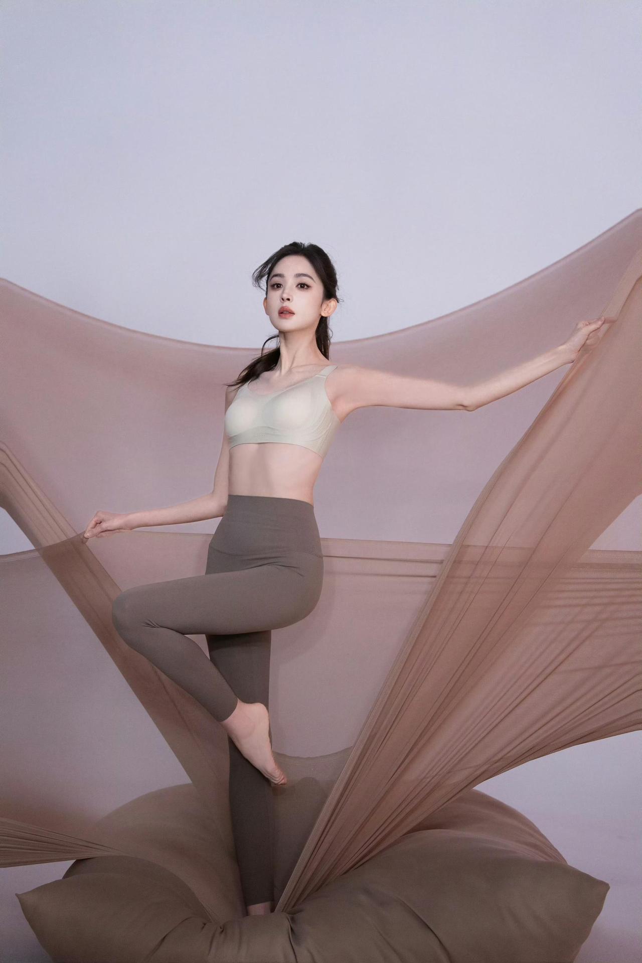 娜扎 把马尾扎成一束光, 让呼吸贴紧布料的温度。 裸色的纱从指尖漫开, 像未被惊扰的晨雾, 裹住身体里流动的舒展。 裤脚贴着脚踝的弧度, 每一寸紧绷都藏着柔软的力, 单脚立在绒垫上, 把平衡站成一首安静的诗。 风撩动发梢, 也撩动纱幔的褶皱, 目光落在镜头里, 是不加修饰的、原生的温柔。