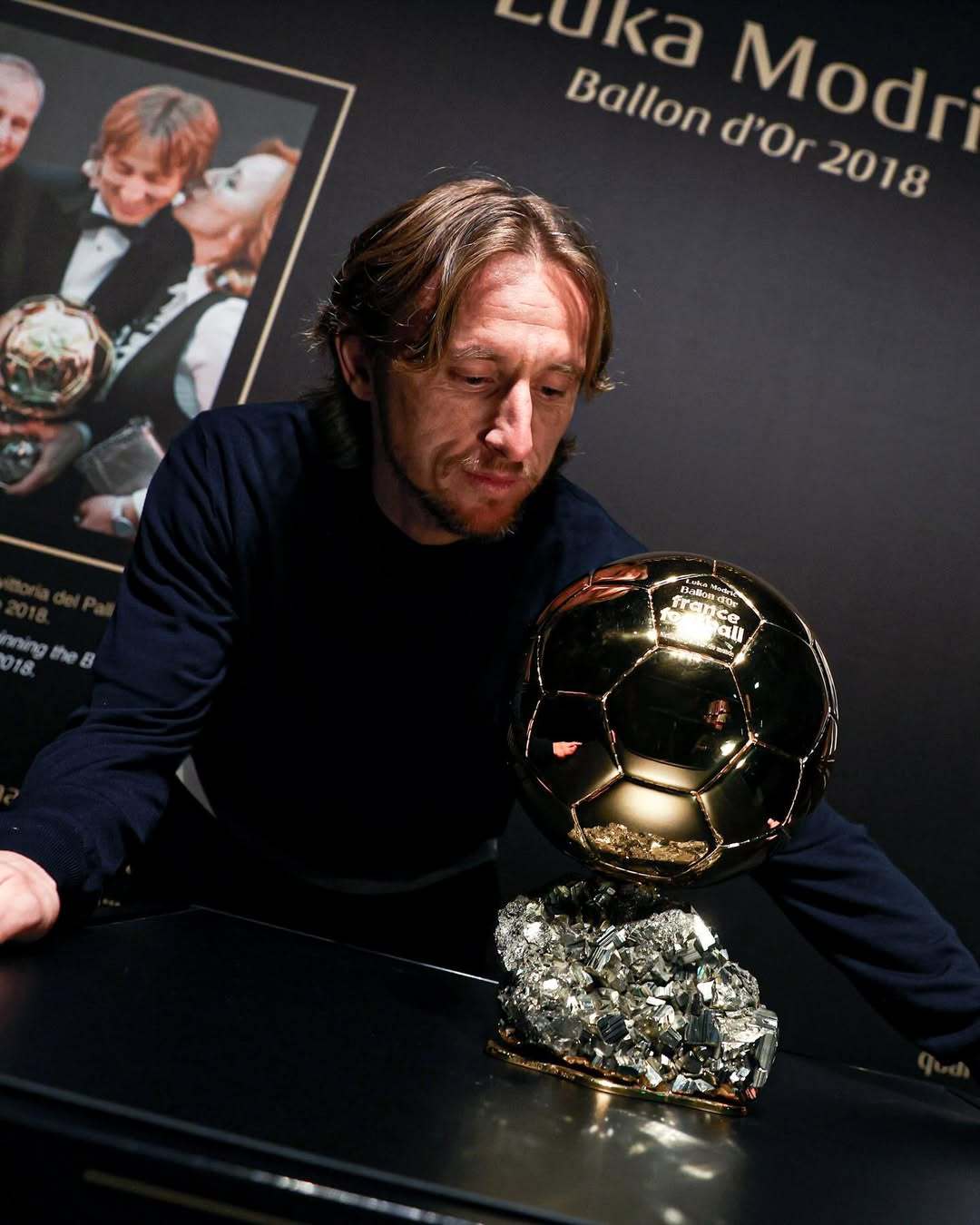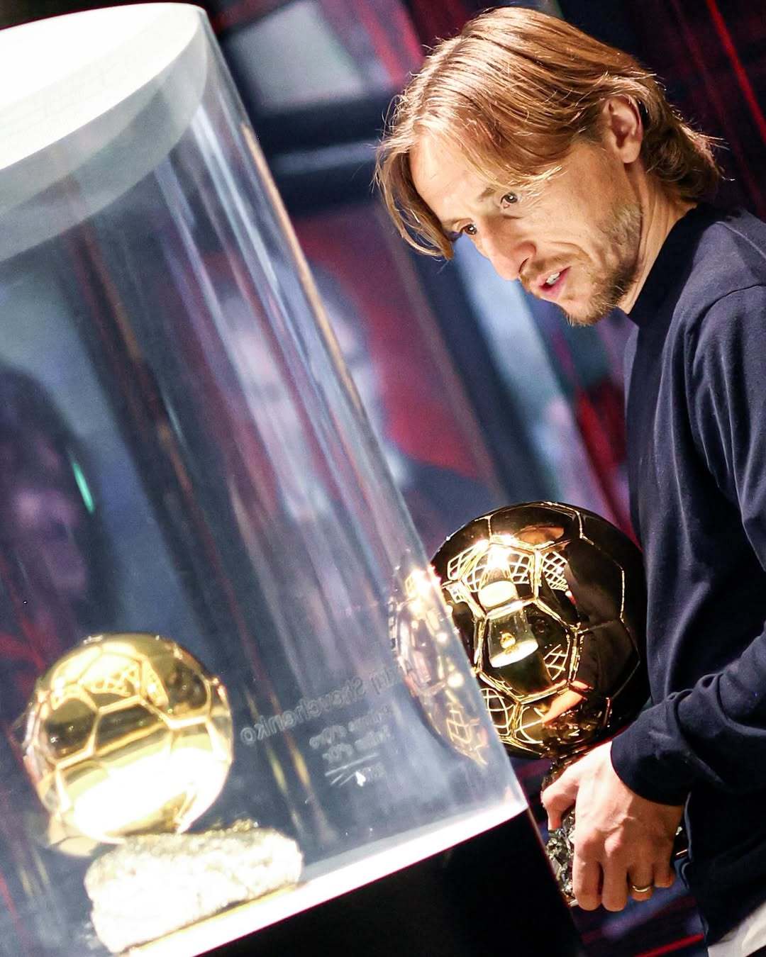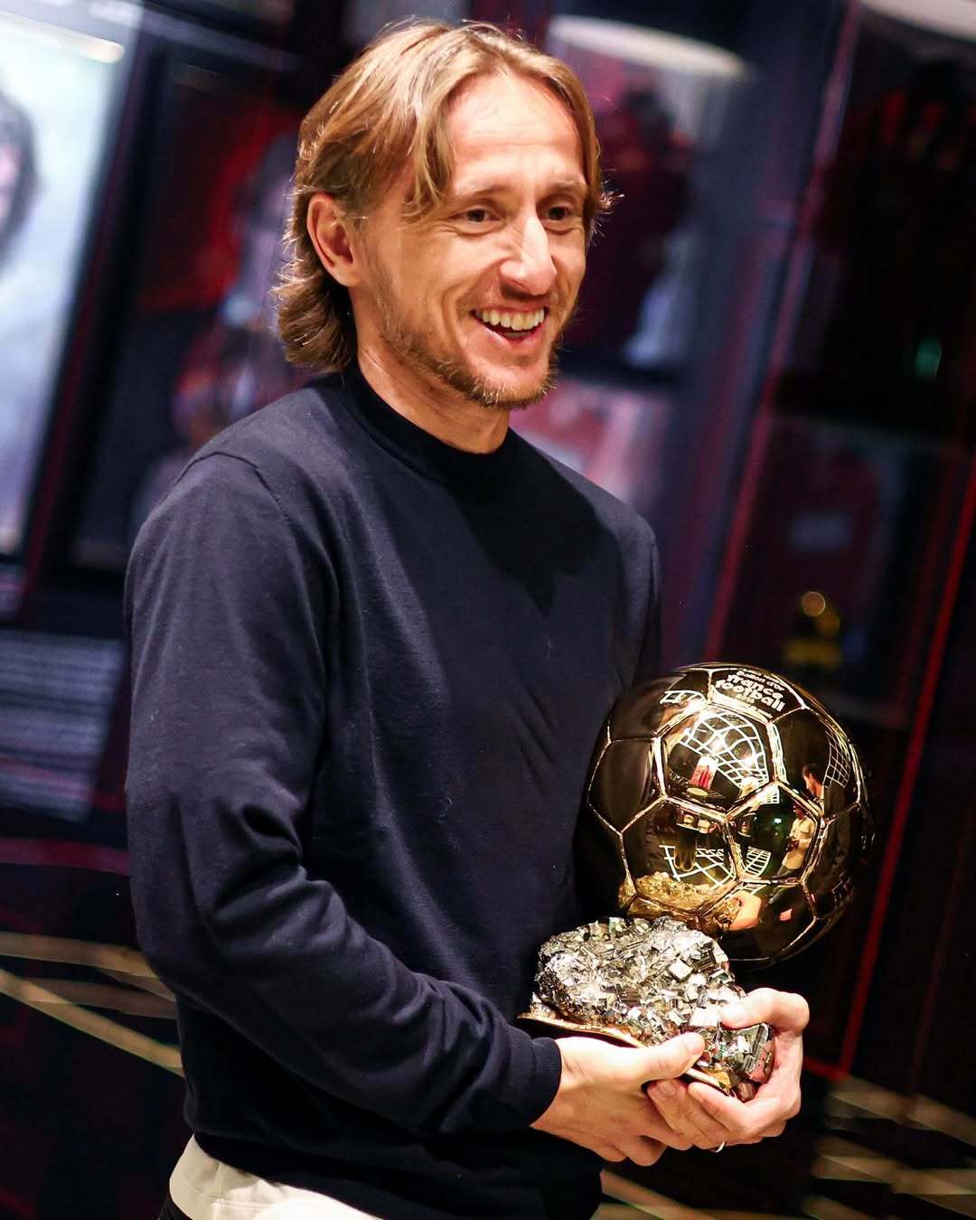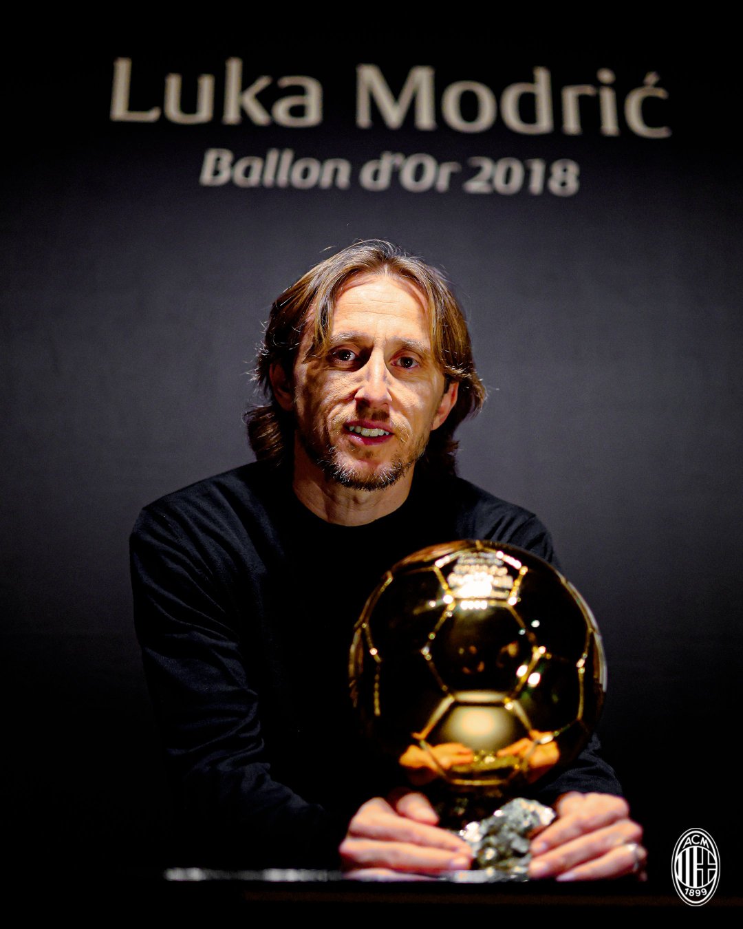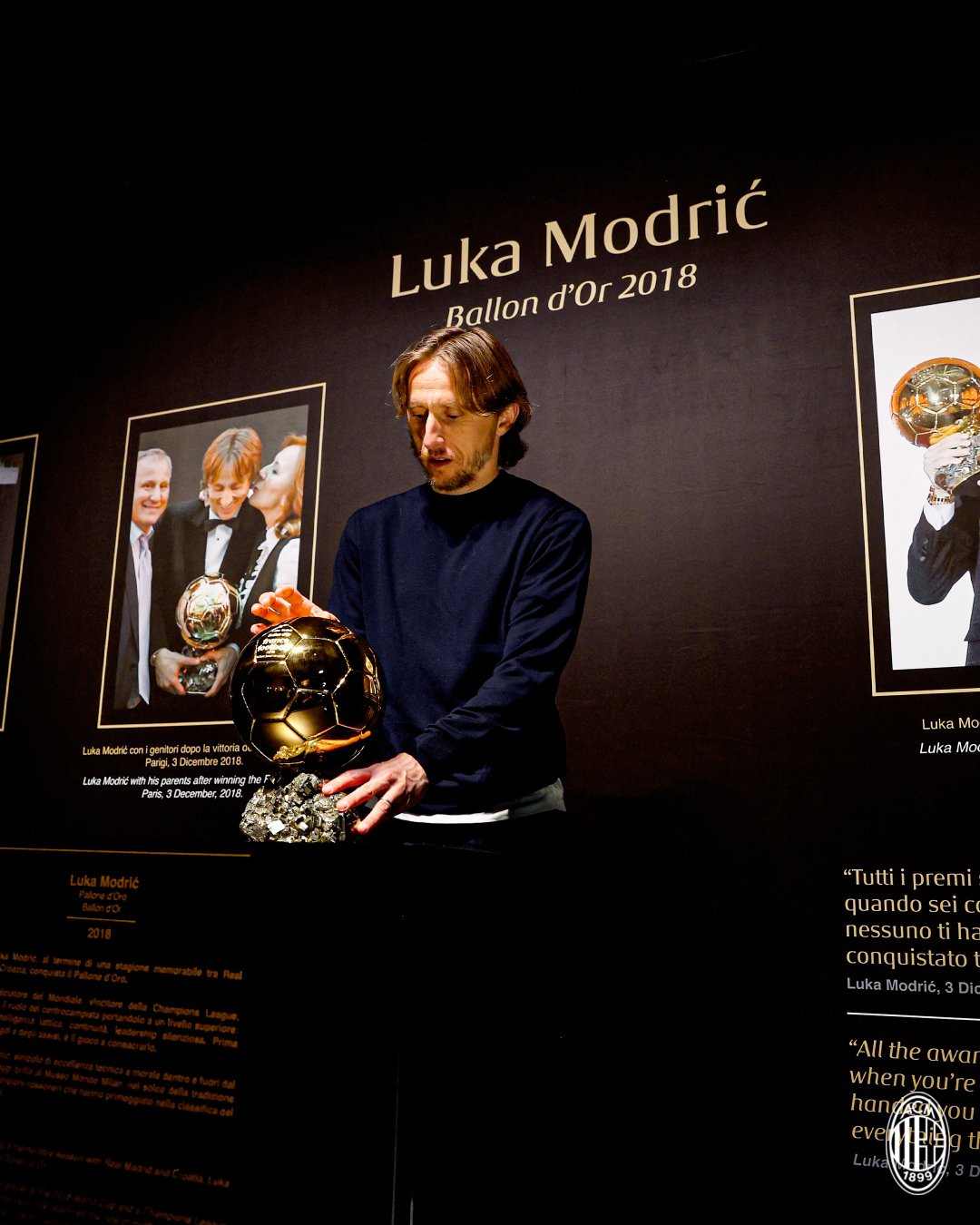 莫德里奇将他的金球奖带到了AC米兰博物馆展览。