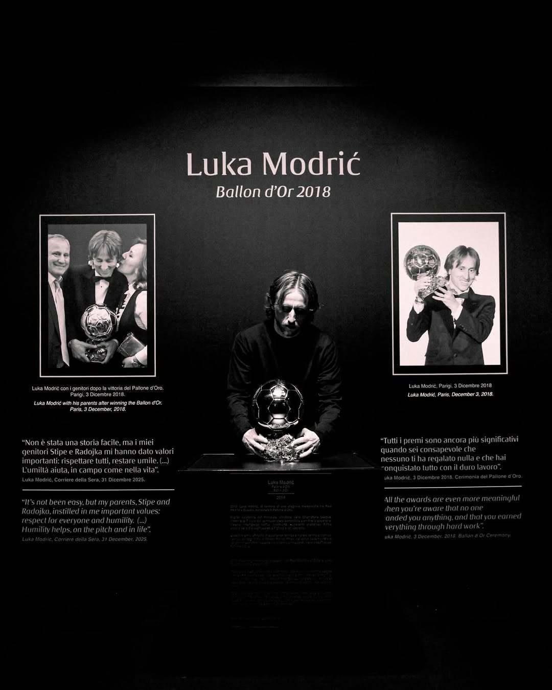 莫德里奇将他的金球奖带到了AC米兰博物馆展览。halamadrid