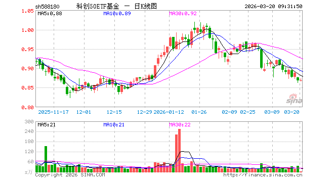 3月20日,科创50ETF基金(588180)开盘跌0.12%,报0.867元。科创50ETF基金(588180)重仓股方面,中芯国际开盘跌0.72%,寒武纪涨0.21%,海光信息涨0.84%,澜起科技涨1.15%,中微公司涨0.50%,金山办公涨0.06%,联影医疗跌0.06%,拓荆科技涨1.04%,芯原股份涨1.90%,沪硅产业涨0.48%。
