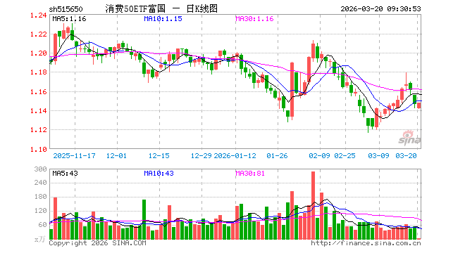 3月20日,消费50ETF富国(515650)开盘跌0.35%,报1.142元。消费50ETF富国(515650)重仓股方面,贵州茅台开盘涨0.01%,美的集团跌0.11%,五粮液涨0.00%,伊利股份涨0.04%,格力电器跌0.03%,牧原股份涨0.27%,海尔智家涨0.00%,中国中免涨0.61%,温氏股份涨0.00%,山西汾酒跌0.09%。