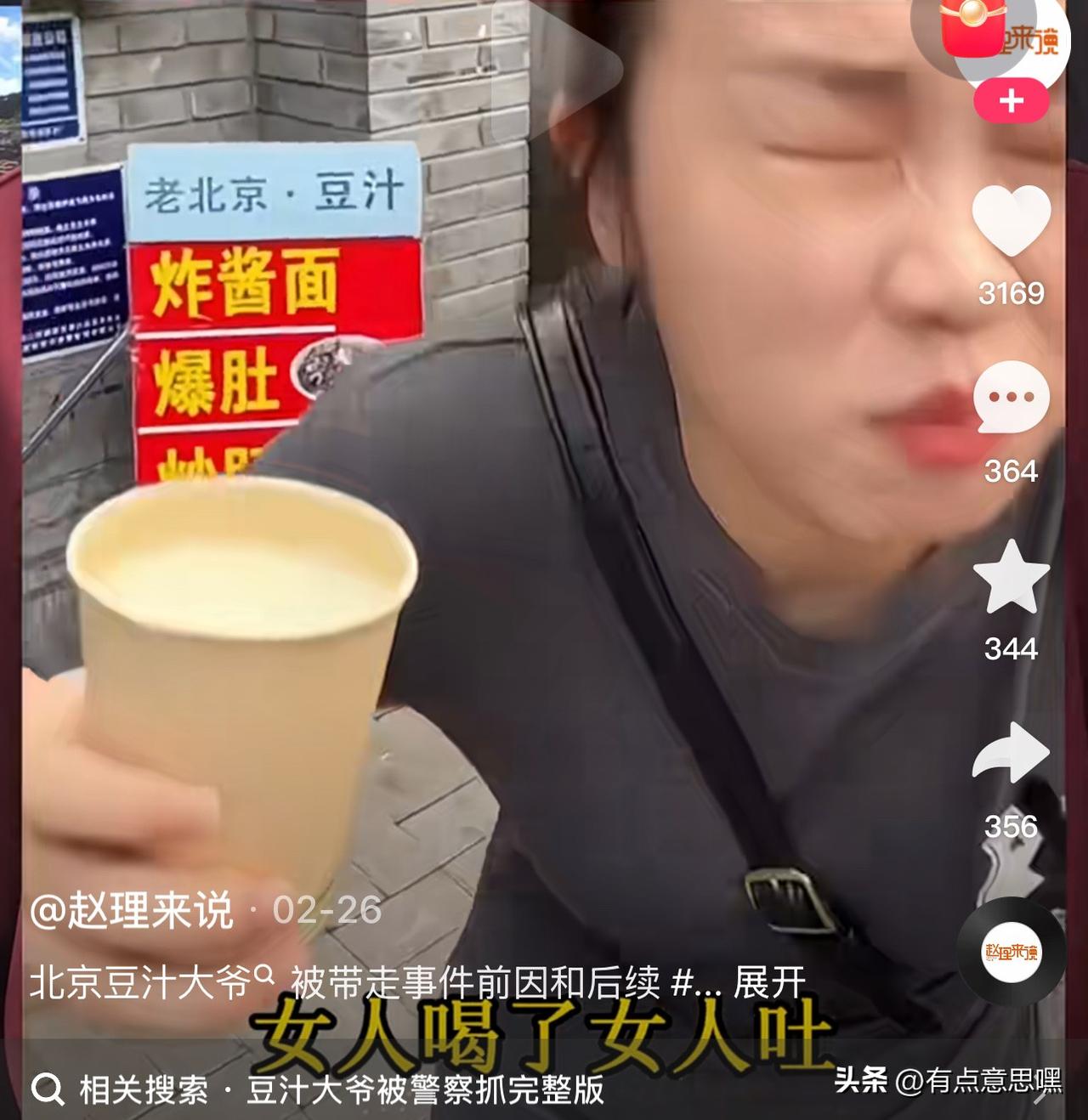 如此卖豆汁,不该取缔吗 近日,一位在北京胡同吆喝卖豆汁的个体小摊贩,被帽子叔叔劝退了。结果网上出现了很多反对警方和市容机关的做法,为小贩叫屈,真不知他们是怎么想的,圣母心爆表。 首先你售卖的是食品,想必这个摊主既没营业执照,更没有卫生许可证、健康合格证吧 第二,这是在胡同里面,是居民生活区而不是商业区,每天这里被这个摊贩聚集的乌央乌央的,严重的扰乱了周围居民生活休息。 第三,此人非北京人,对北京传统美食没有丝毫尊重,为何人类在饮食上具有文化属性,因为饮食是人类唯一生存的必需品,从古至今,爱惜食物、尊重给予人类生命的大自然赏赐是人类文明的最起码的认知。 最后一点,也是最重要、最令人无法接受的就是以糟蹋食物为卖点的行为,把街坊四邻的环境弄得乌七八糟,随地可见的一片一片臭气熏天的呕吐物,你要是邻居,你的门口、窗户底下全是这东西,你恶心不恶心! ————————————