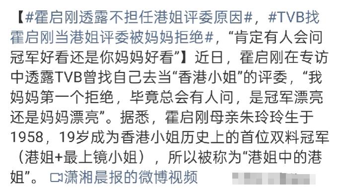 霍启刚,太敢说了! 3月19日霍启刚不当港姐评委,冲上热搜!理由让人笑喷妈妈不