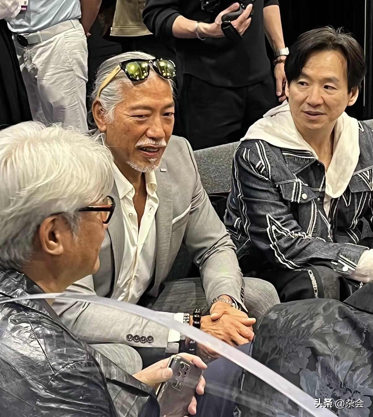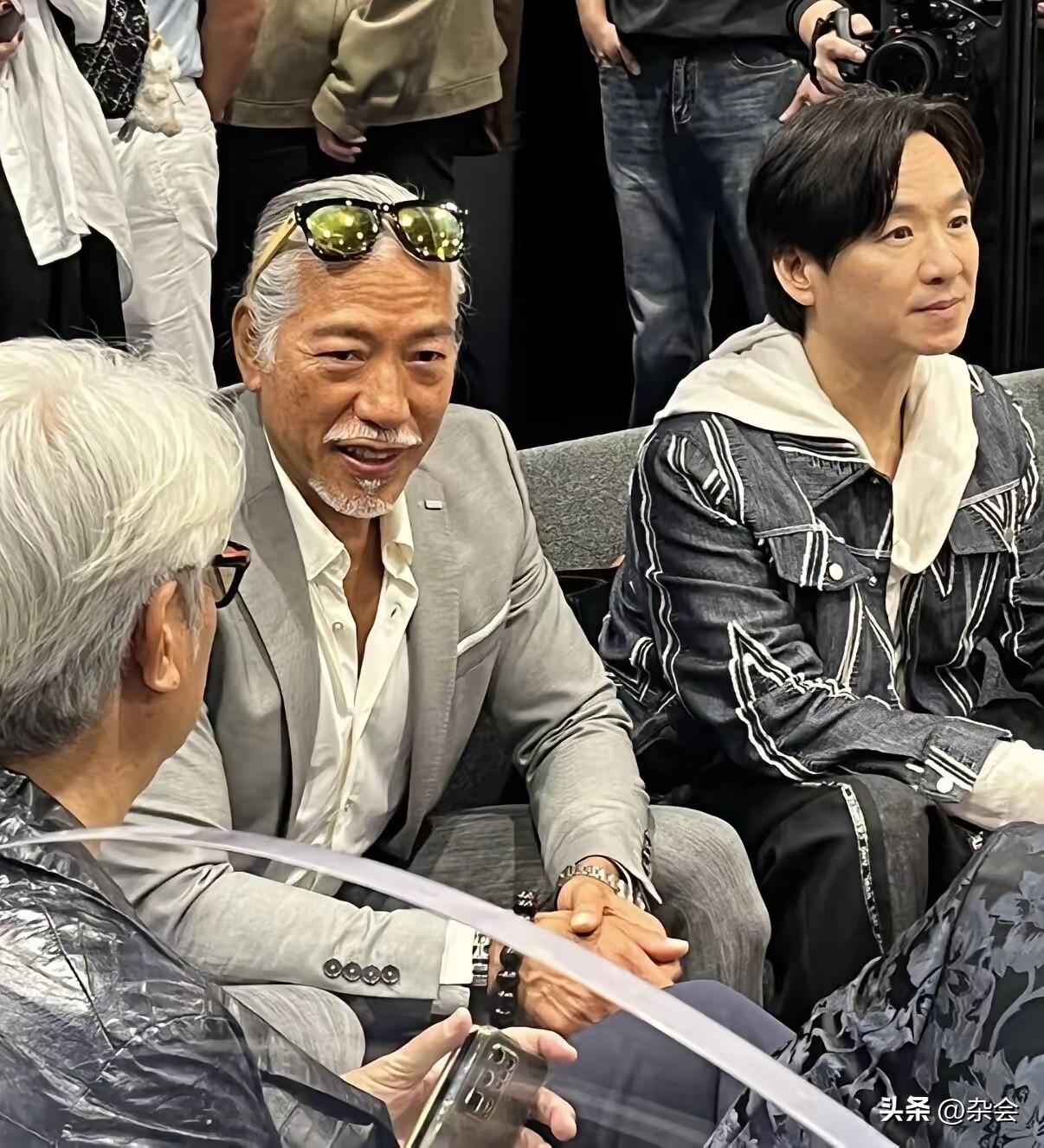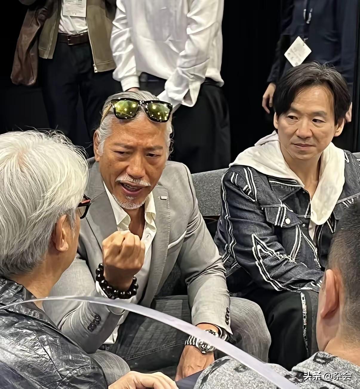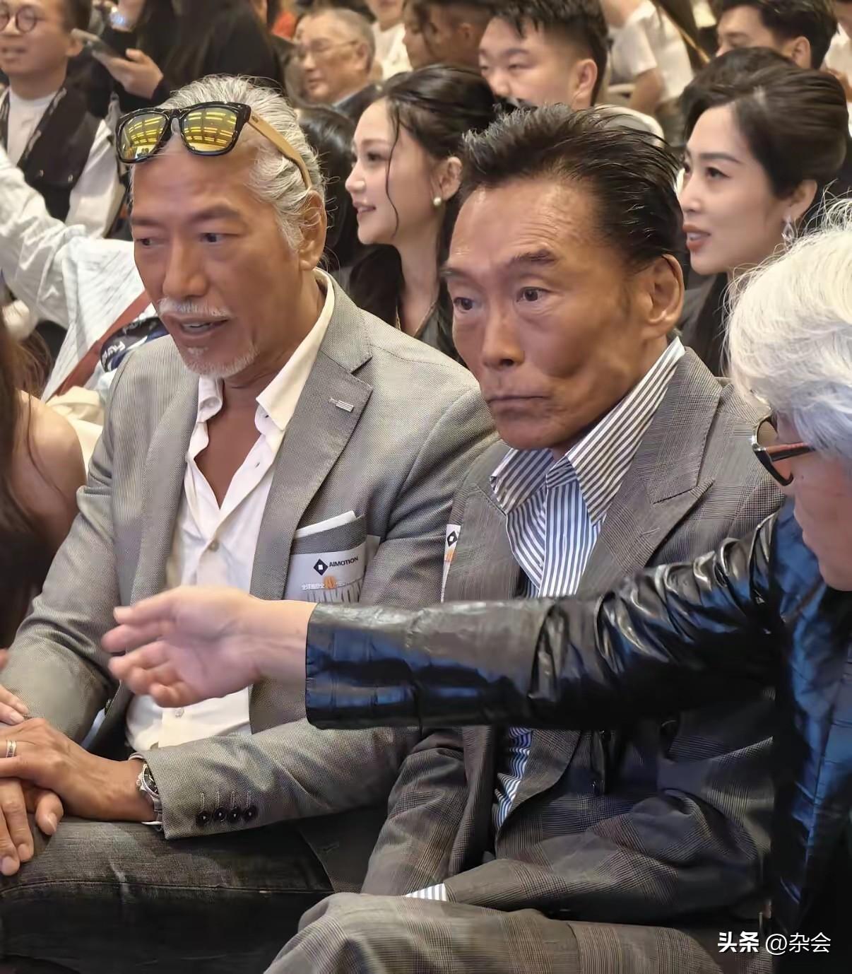 昨晚香港会展中心太热闹了!看到张耀扬、郑浩南、朱永棠、尹扬明等人罕见同框,仿佛梦回当年那个热血沸腾的港片时代。 最让人惊讶的是张耀扬,虽然满头白发,但墨镜西装加持,身材依旧挺拔,那种沉淀下来的男人味反而更浓了!这就是传说中的“优雅老去”吧。坐在一旁的朱永棠脸上有了岁月的痕迹,郑浩南也是意气风发,在内地发展得风生水起。 老友相聚,畅谈电影,看着他们熟络地聊天,画面太美好。虽然陈浩民似乎有点“融不进去”,但不妨碍整体气场。如果这群实力派能再度合作,绝对是王炸级别的作品!你们期待吗?
