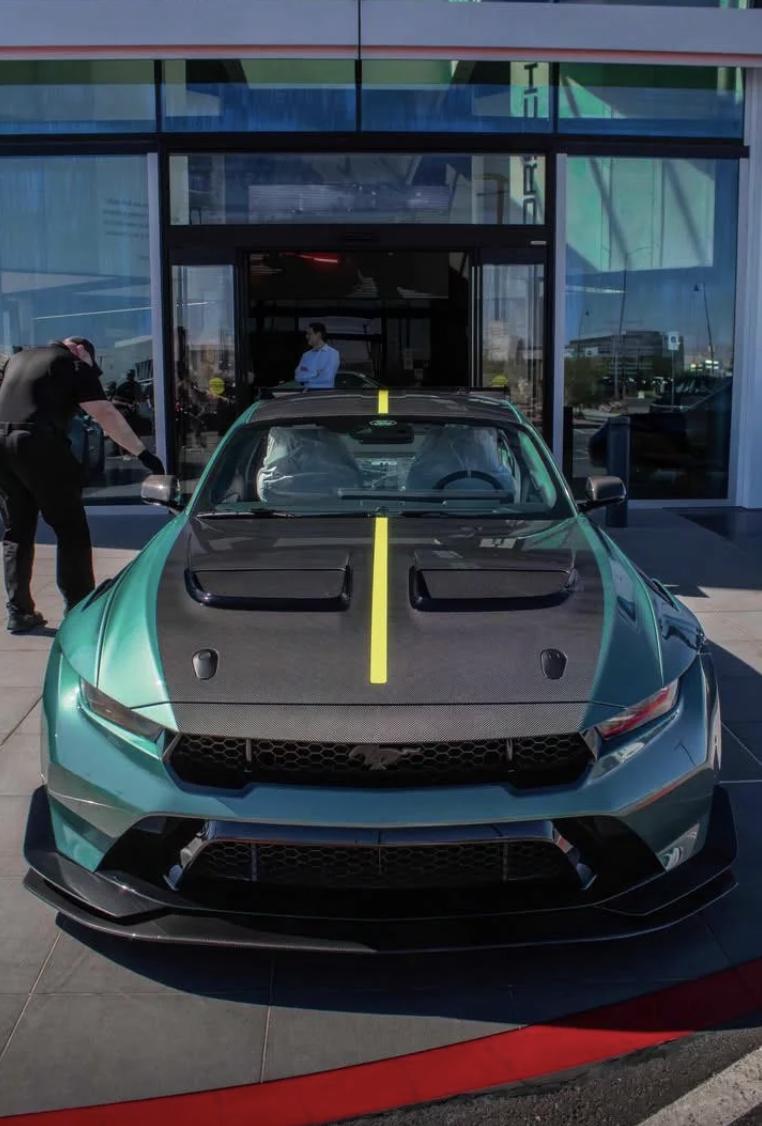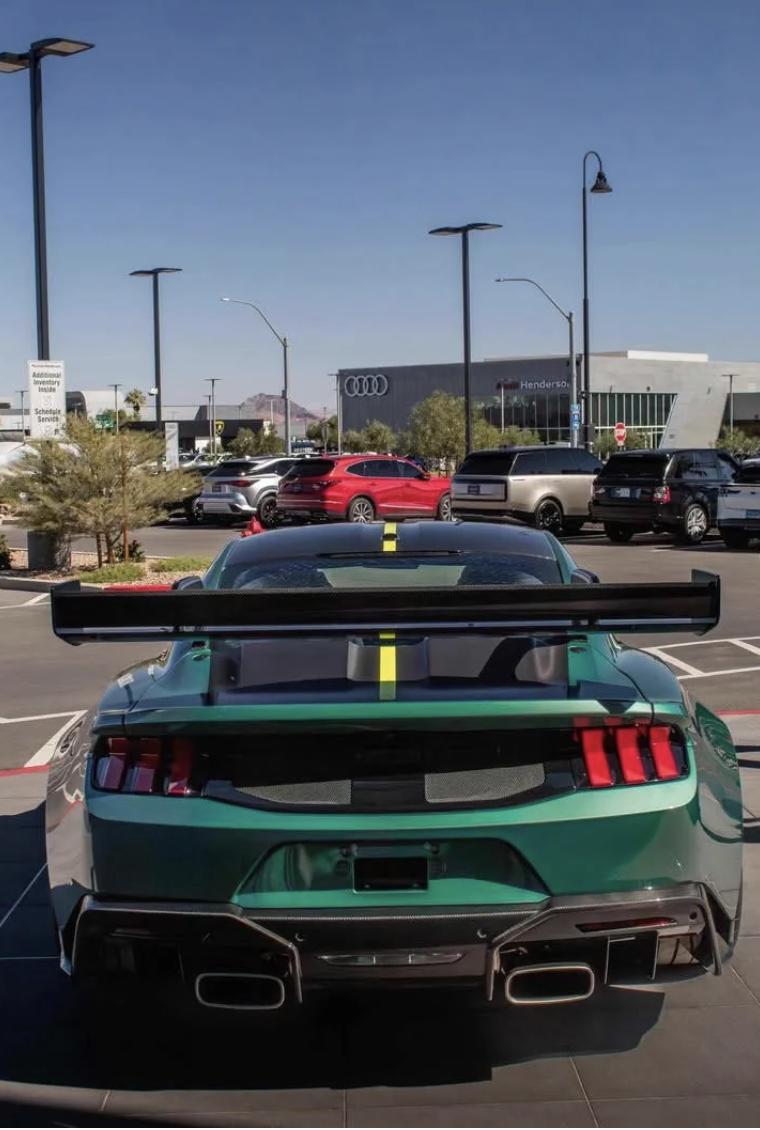 福特Mustang GTD是一款极具特殊意义的限量跑车。它的起步价超过30万美元,搭载5.2升机械增压V8发动机,最大功率达815马力,极速可超200英里/小时。 为了彰显尊贵,福特为该车提供了高度定制化的购买流程,并承诺可以将车送到客户指定的“任何地点”。最近,一位车主就在Reddit上验证了这一点:他真的让福特把车送到了他当地的保时捷经销商处。 这台交付的GTD采用了惊艳的绿色车身,搭配裸露的碳纤维车顶和引擎盖,以及黄色赛车条纹。当这台美式猛兽停在一排保时捷911旁边时,其庞大的身躯显得格外抢眼且“格格不入”。 福特GTD品牌经理表示,每一辆GTD的交付都由福特官方与车主直接协调,并联合专业承运商进行严格的交付前检查。官方致力于把控每一个细节,确保为车主提供最顺利、周到且难忘的专属提车体验。【来自懂车帝车友圈】