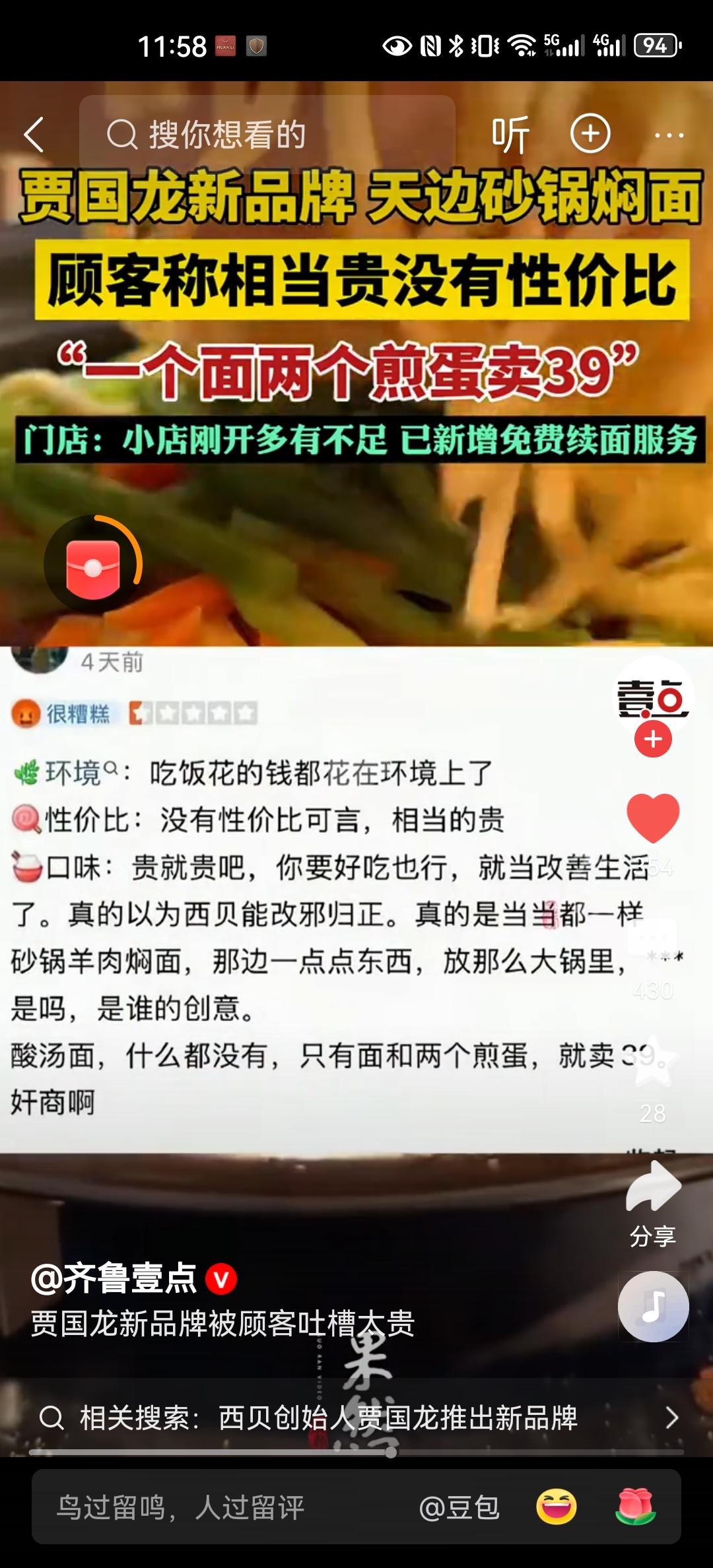 值得夸赞的是,现在的厨房是透明的,可以看到这些焖面真的是现场的制作,那么西贝唯一需要证实的就是,食材是中央厨房的,还是新鲜采购的呢?如果也是新鲜采购的,那就符合现购现做的新鲜标准吧! 价钱贵与不贵,其实是相对的,有些人会觉得贵,有些人会觉得只要吃饱了,自己的消费力也比较可以,那就不贵。同样店开在那里,消费者可以自己用脚投票,愿意进门就消费,不愿进门就旁观。 西贝在不断尝试创新,也在不断的引进新的股东,自然要推出新的品牌。看来贾老板不是那么守旧,其实还是非常乐于创新的。