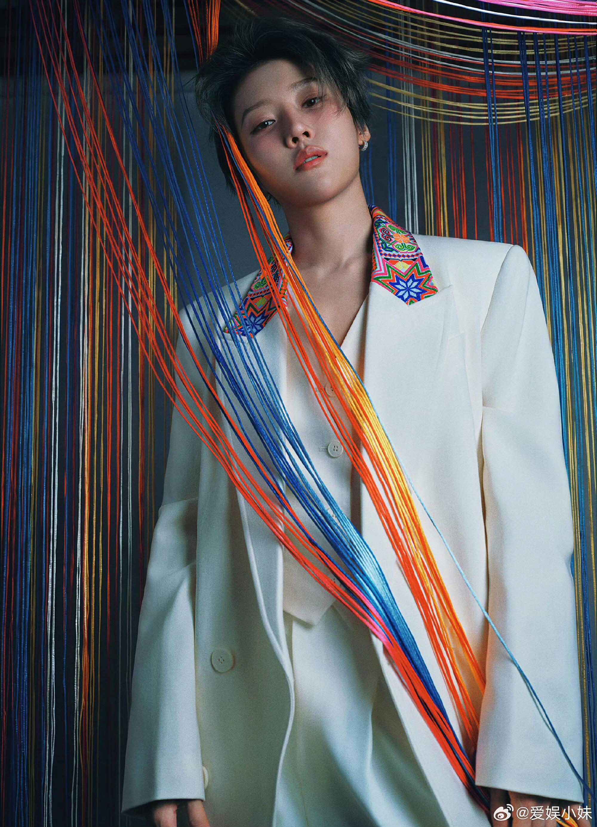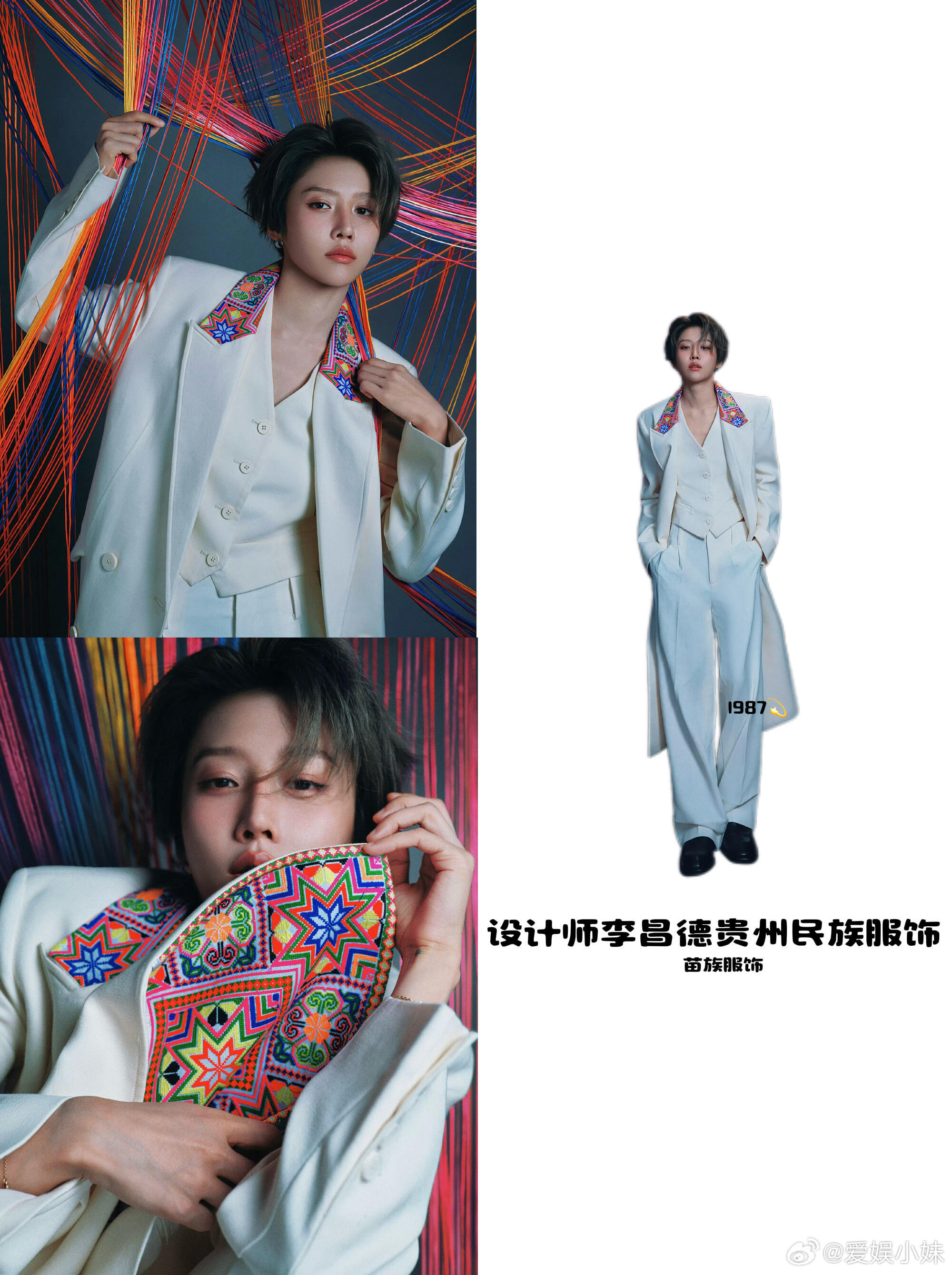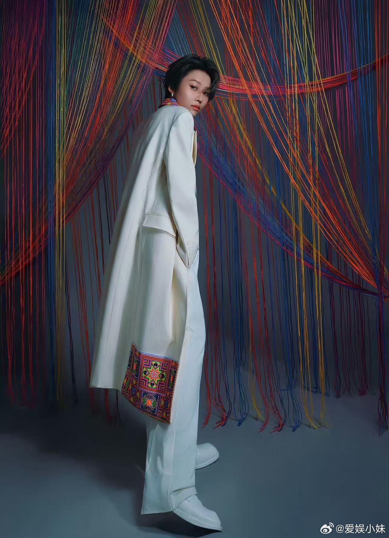 在《上城士》非遗巡游展上,刘雨昕以极具先锋感的造型惊艳全场。此造型由贵州民族服饰设计师李昌德精心打造,以苗绣为主题,将利落白西装作为基础框架,绚烂苗绣作为核心亮点。贵州苗绣的精巧针脚与色彩鲜明的八角星花纹相互交织,巧妙地将黔地非遗的千年底蕴与现代时装的利落质感相融合,在彩线织就的光影中,展现出非遗匠心的传承与创新。上城士非遗巡游展上城士活动
