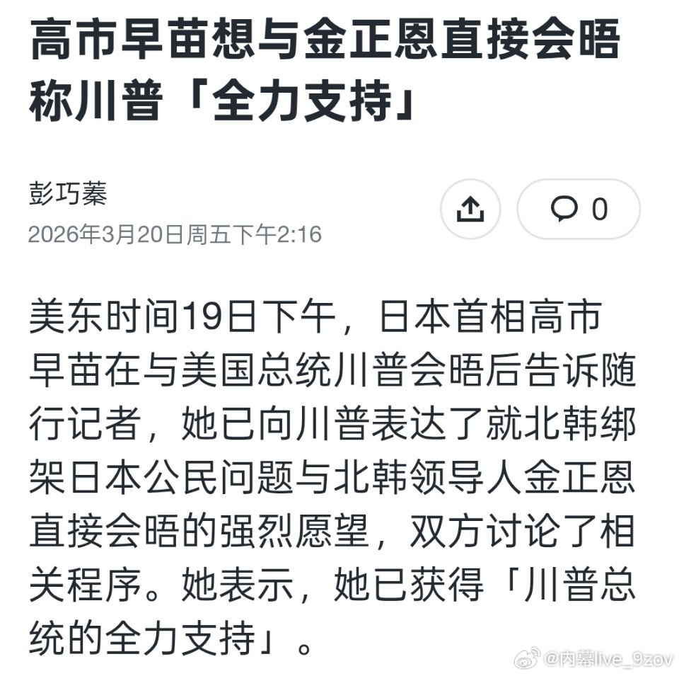 高市早苗希望能与金正恩直接会晤