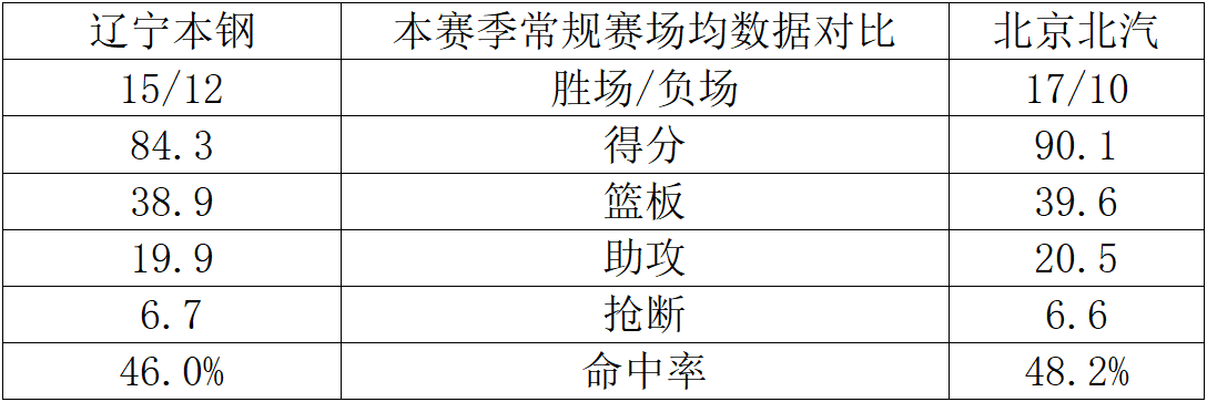 对阵双方:辽宁队VS北京队