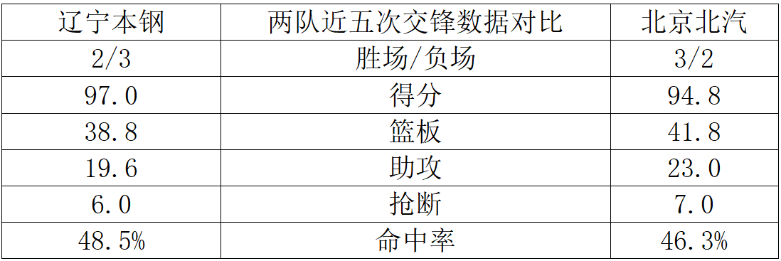 2024-2025赛季,辽宁本钢最终排名第4,北京北汽最终排名第2。辽宁本钢在与北京北汽的历史交锋中占优,但上赛季2次交手,辽宁本钢皆负;本赛季首战亦负。