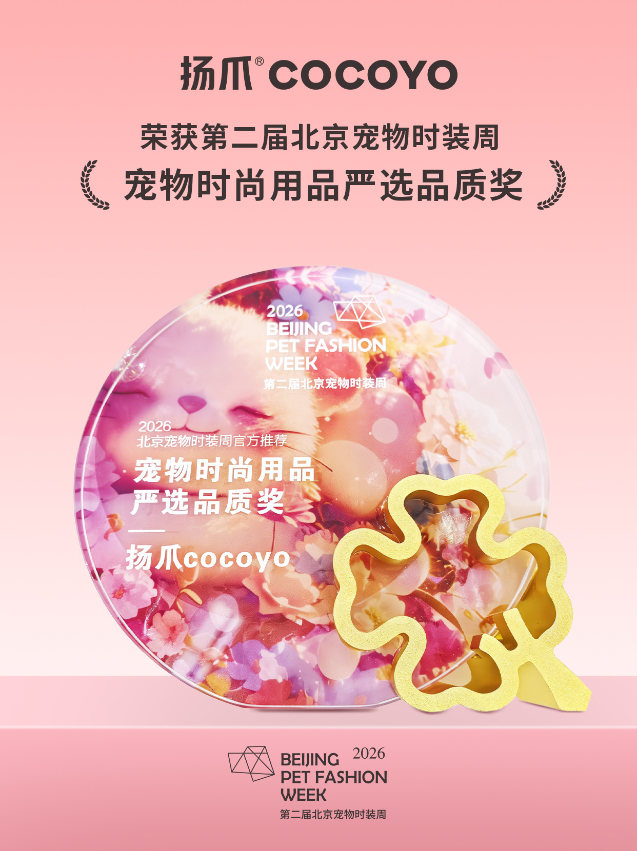 第二届2026北京宠物时装周🏆扬爪斩获《宠物时尚用品严选品质奖》宠物时尚圈,扬爪来了颜值与实力,扬爪双料担当未来,继续引领精致养宠新浪潮🔥扬爪cocoyo 精致养宠选扬爪