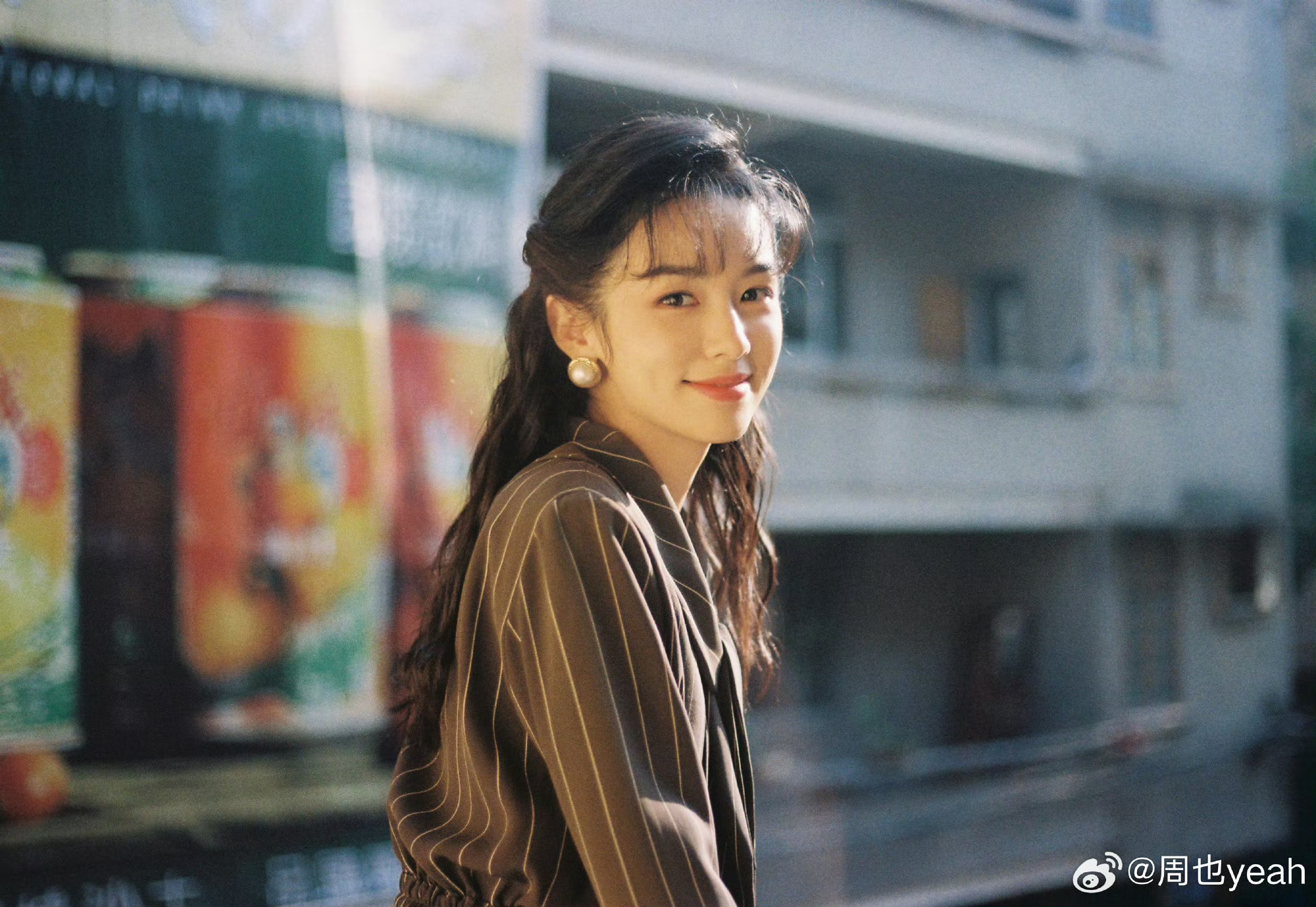 哇周也发了营业照,也太有年代感氛围了!港风条纹西装+温柔卷发,瞬间梦回80年代的
