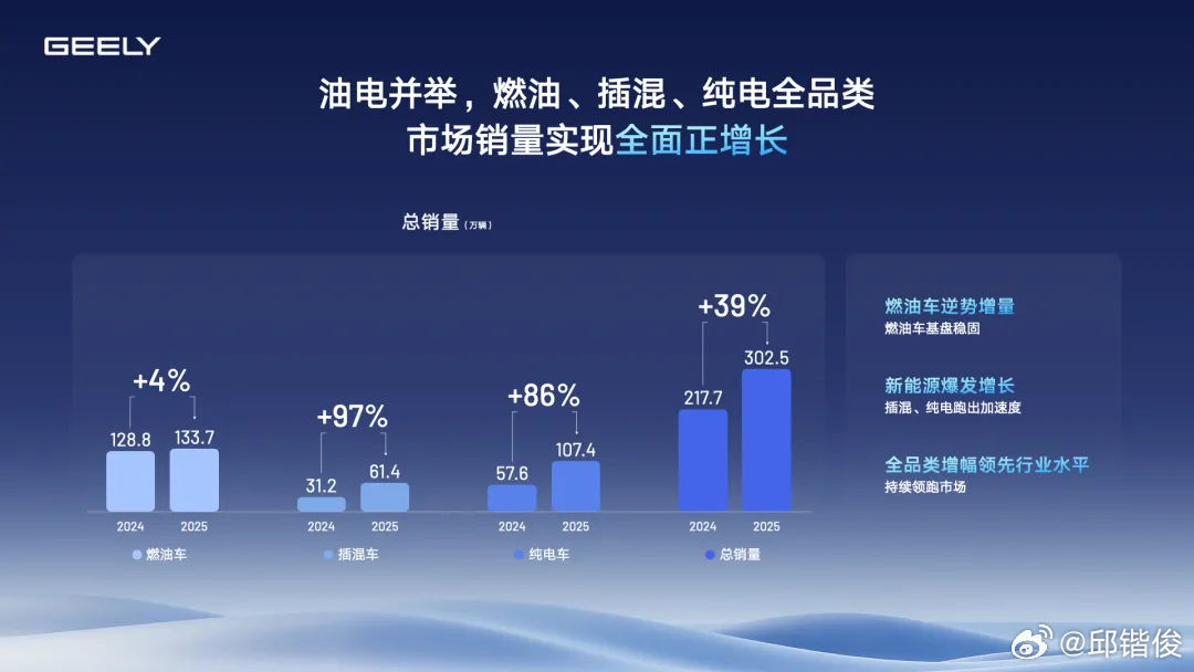 2025年,吉利汽车集团用一份漂亮的成绩单,证明了自己不仅完成了向新能源的转型,而且因此获得了很好的业绩。