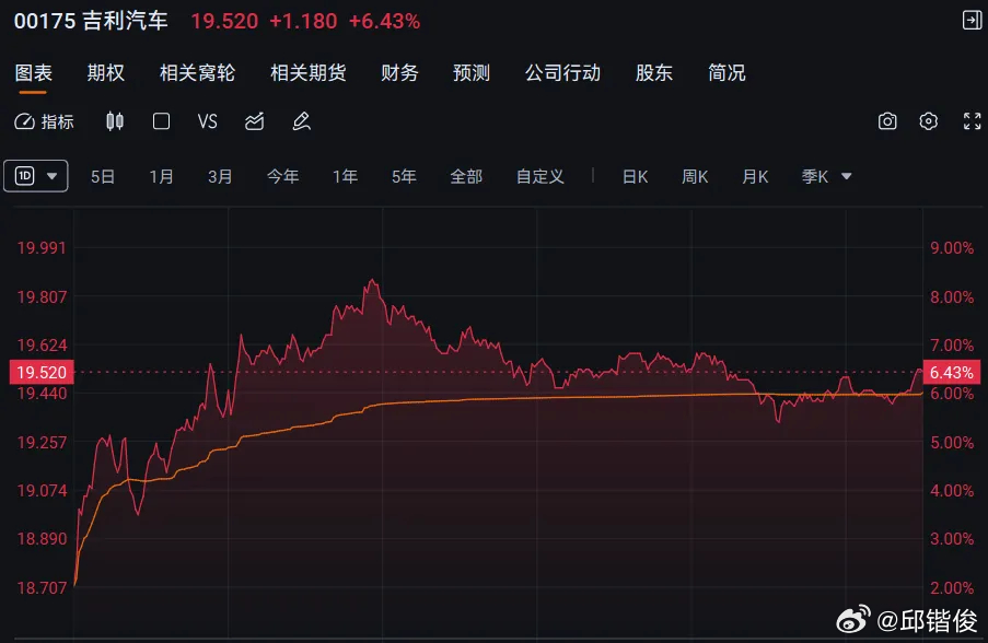 在一份漂亮的财报之后,吉利汽车股价迎来大涨。