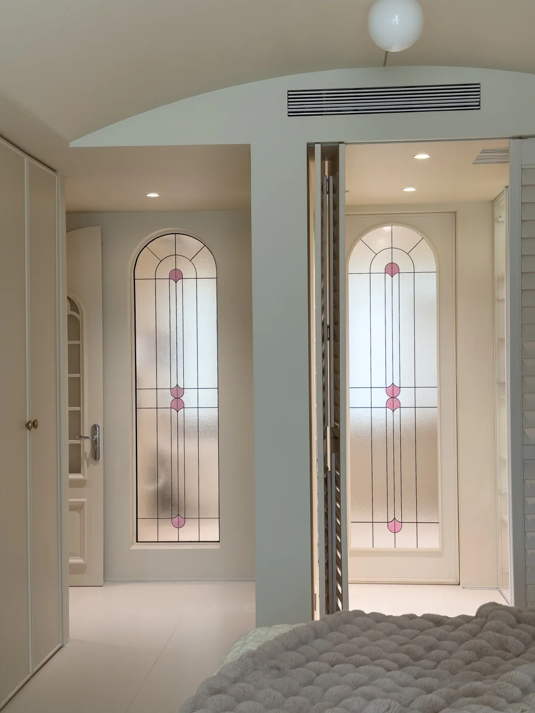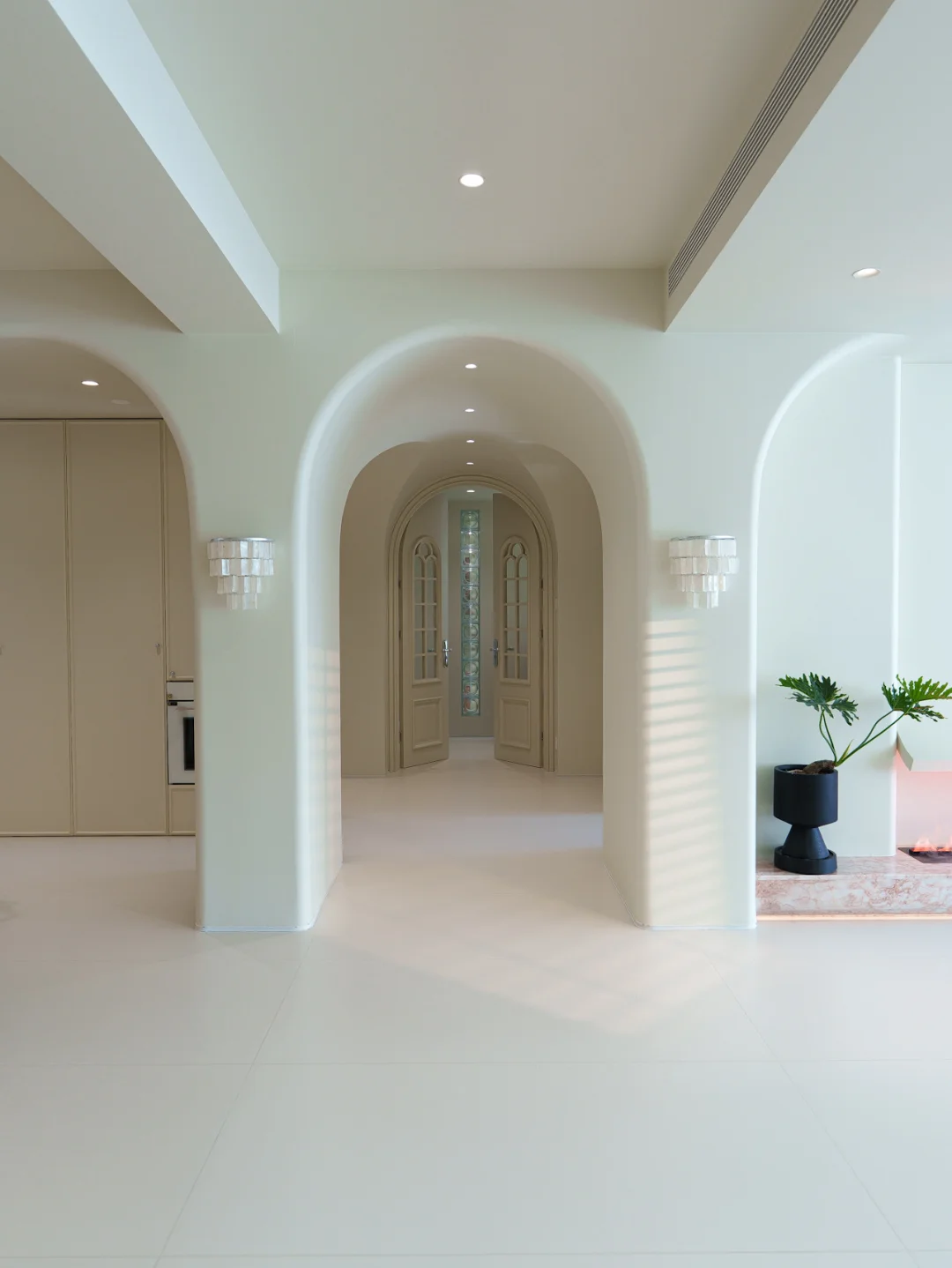 第二次装修我偏爱法式现代风,全屋通铺柔光砖,墙顶地、柜门同色,搭配粉色大理石,没有多余线条,靠材质和色调营造松弛感~