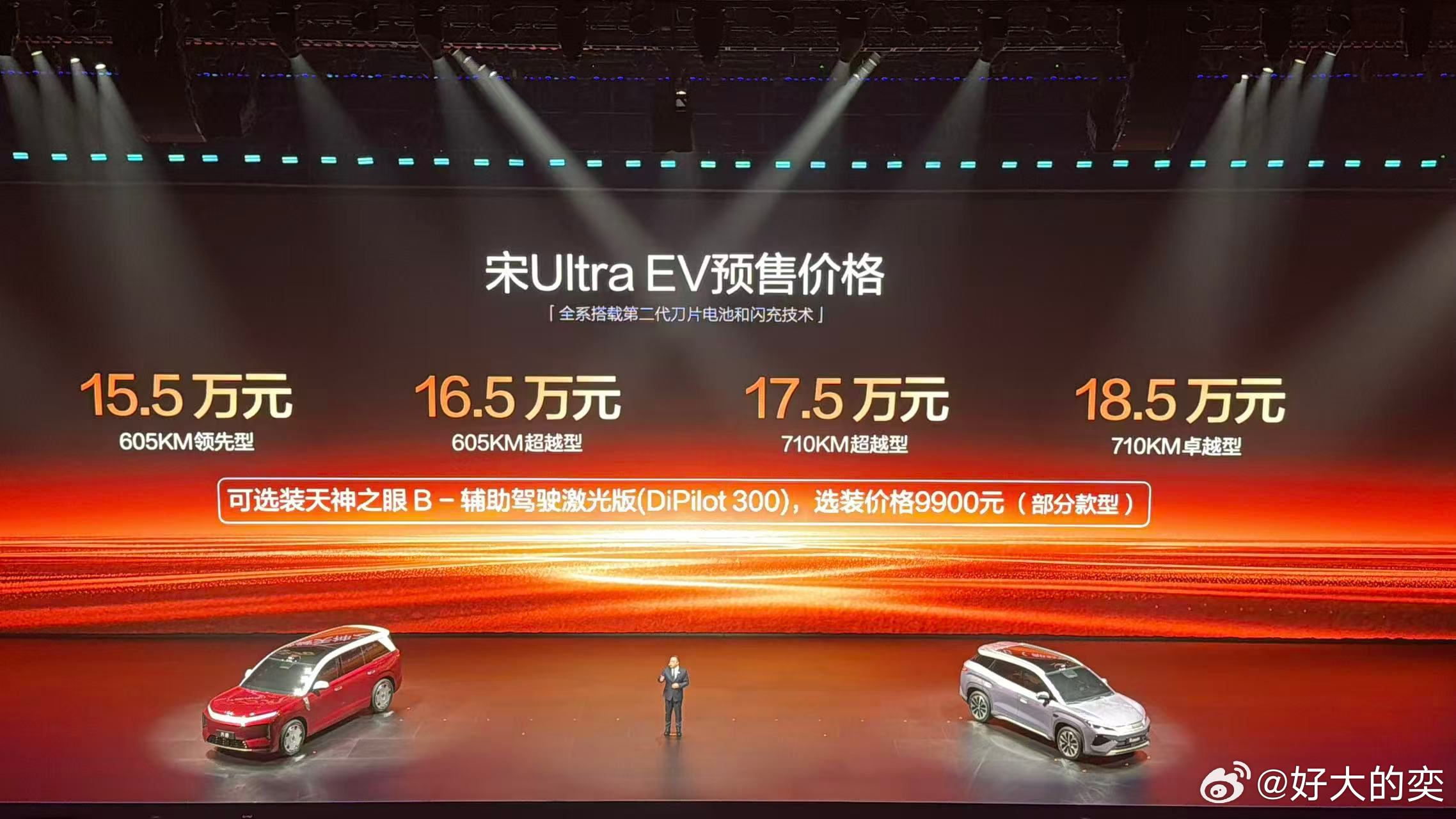宋Ultra EV终于要来了。3月26号上市,预售价15.5万起。我看了下这个定