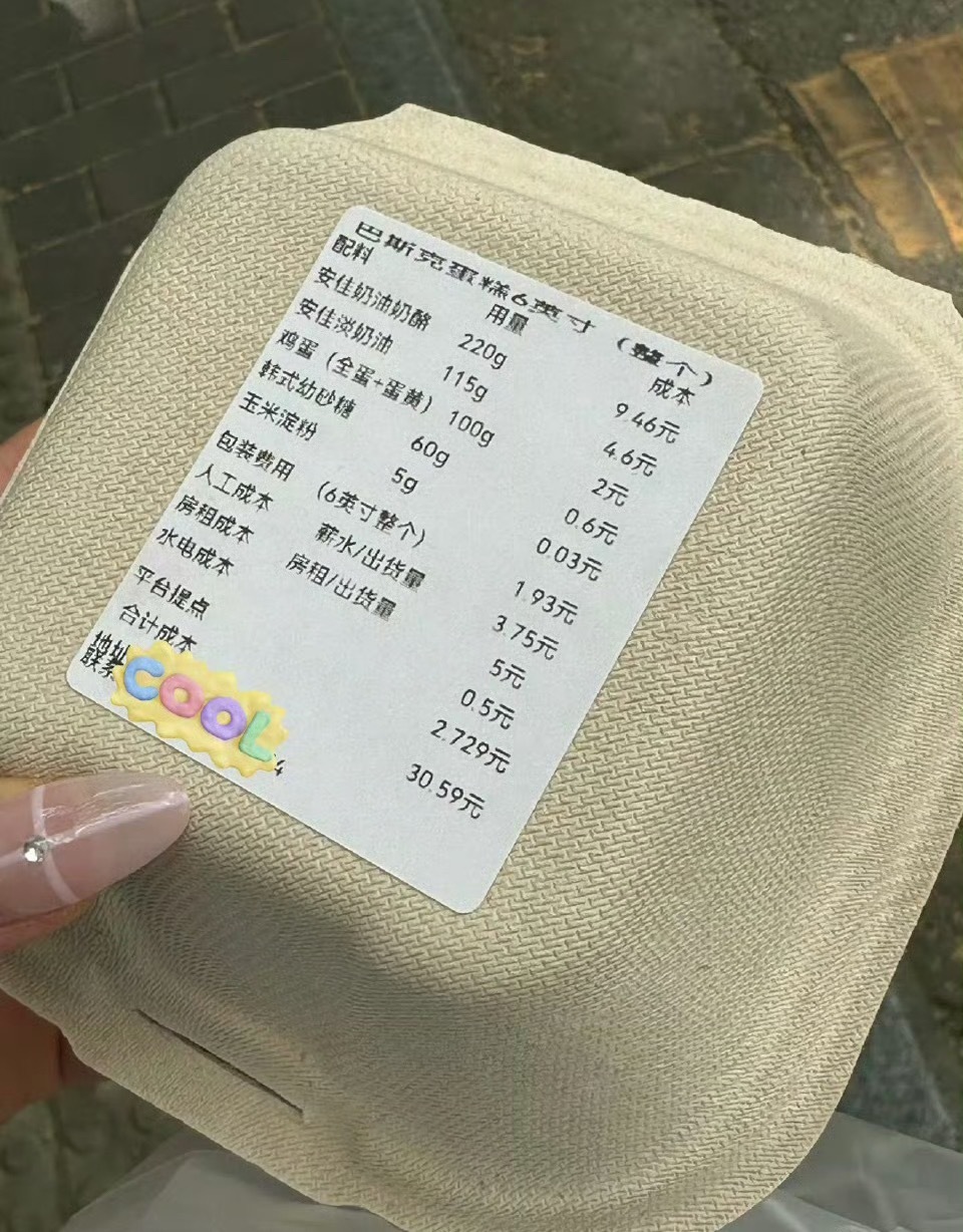 店主直接把小蛋糕的成本都写上了。。。我终于知道为什么蛋糕很贵了
