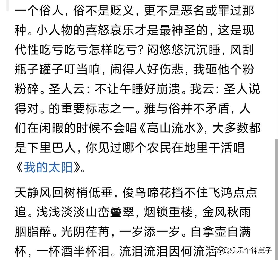 郭德纲,高调发文! 3月20日,郭德纲上了热搜,这一次,不是因为演出时的精彩表现,而是在社交平台高调发文,题目为:我这半辈子悟出一个理:能不指责别人俗,方为雅!以此来分享自己的感悟,瞬间引发热议。 说实话,有点出乎意料,郭老师给人的印象,特别低调,遇事不慌不乱,面对网上的各种看法,几乎就是懒得理睬,专心把相声事业做大做强。 然而,这一次,却发了长文,并且用浓重的笔墨分享感悟,看完全部内容,该说不说,郭德纲不仅口才了得,文笔也非常的厉害,表述清晰,逻辑性强,各种引用和对此,知识好渊博。 开头第一句话,已经点明了主旨,接下来就是铺垫与辩证,说的对与错,咱不好妄自评论。 不过,网友却表达了不同的看法,有赞同也有反驳,只能说,仁者见仁智者见智! 有一说一,郭德纲的相声带给观众很多的欢乐,同时也伴随着争议,能够敞开心扉,与大家交流,也是一种坦言和自信。 如果能听听网友的看法,也是好事,同样是一种进步。
