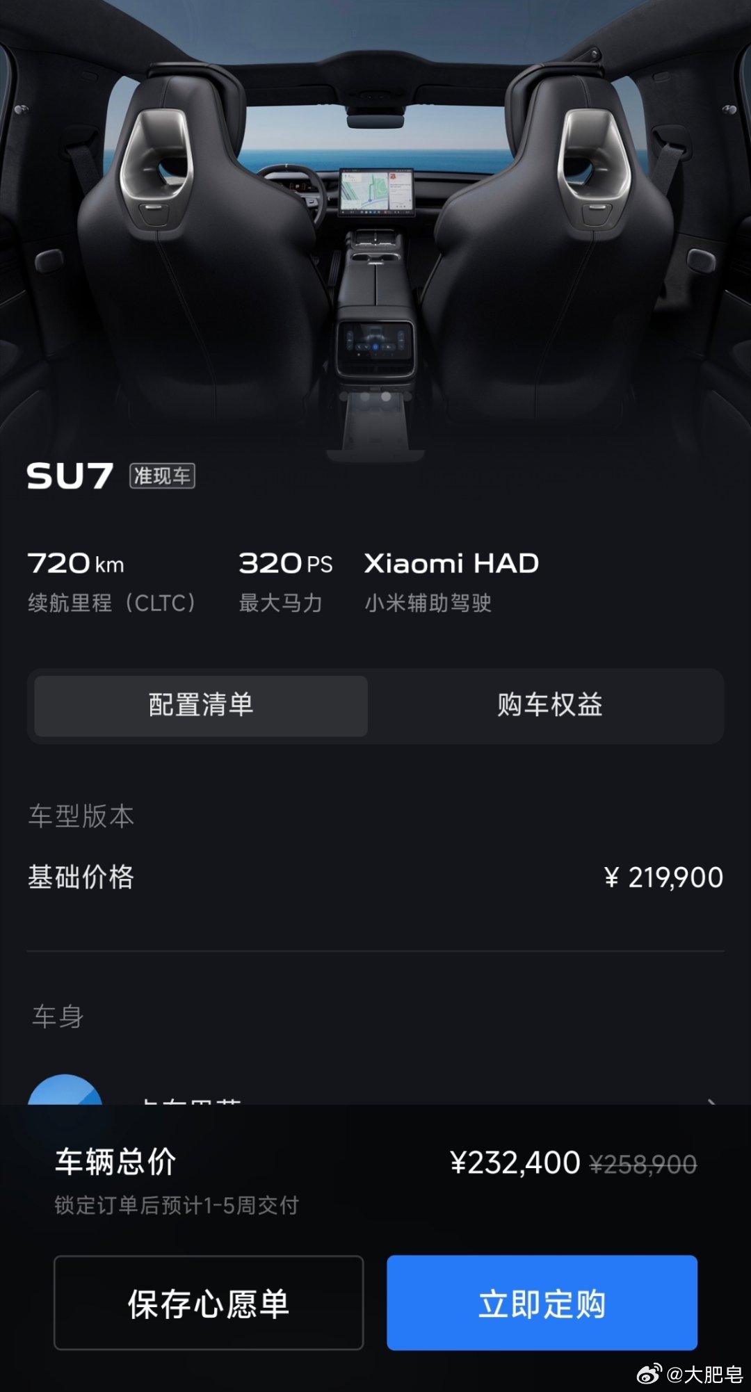 其实我觉得选新小米SU7准新车就挺好,1~5周就能提车啦。很快。