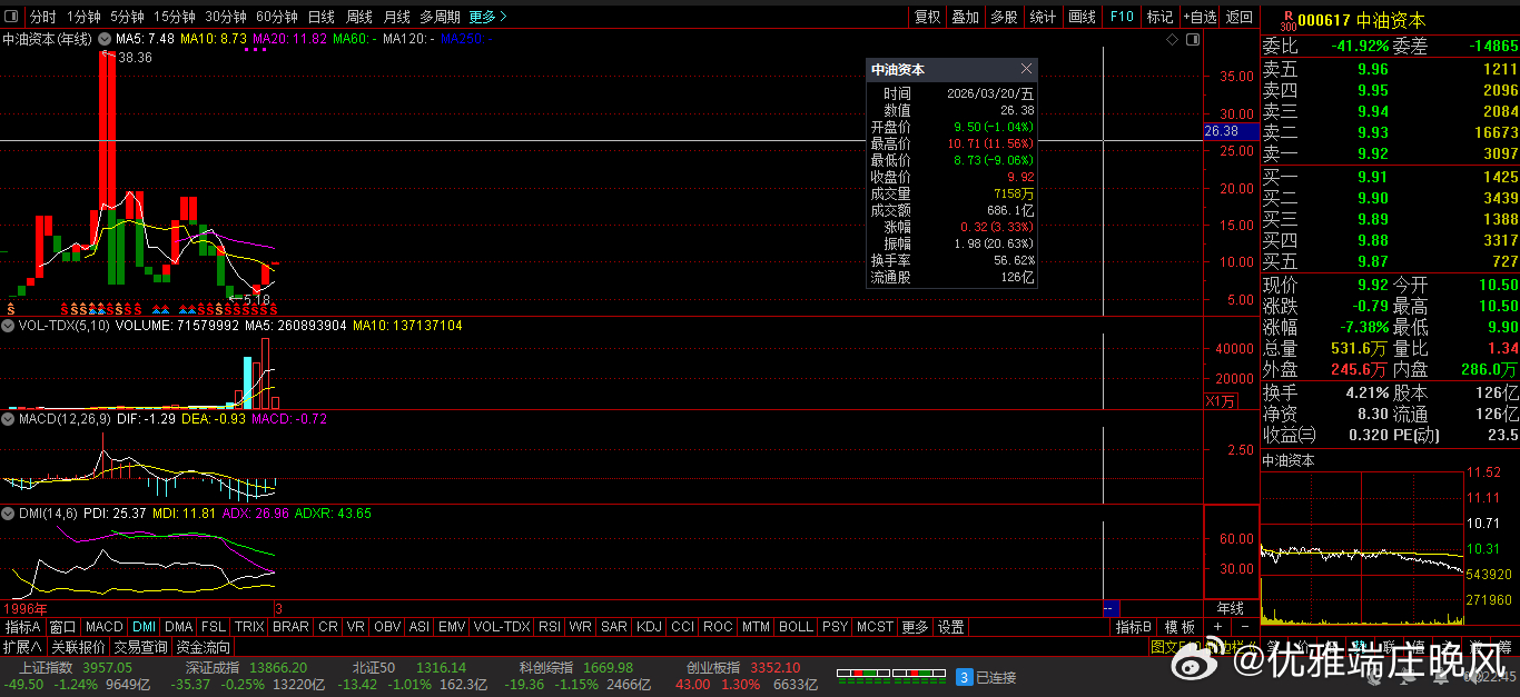 收盘价: 9.92元。涨跌幅: -7.38%。净流入: -8.29亿
