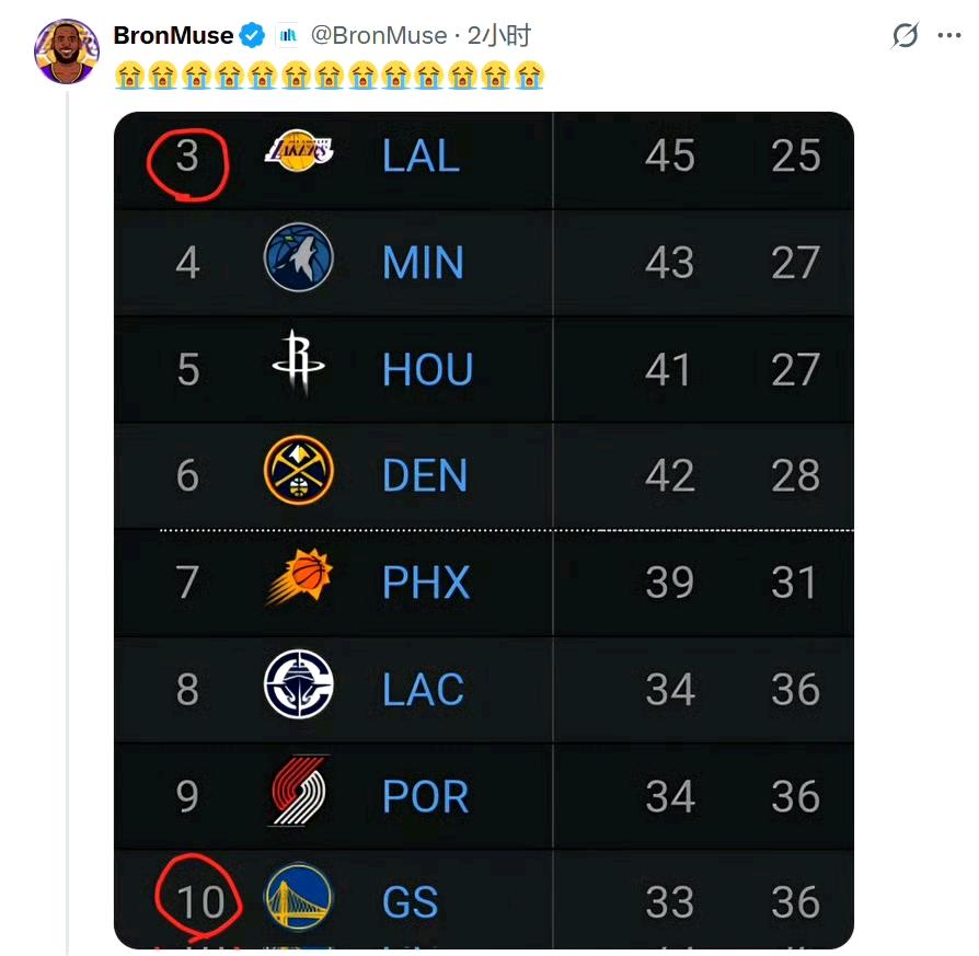 谁是季后赛球队谁是附加赛球队,已经一目了然了! 早在今年2月初,两队还是难兄难弟,湖人第7勇士第8。 如今天差地别,湖人第3勇士第10。