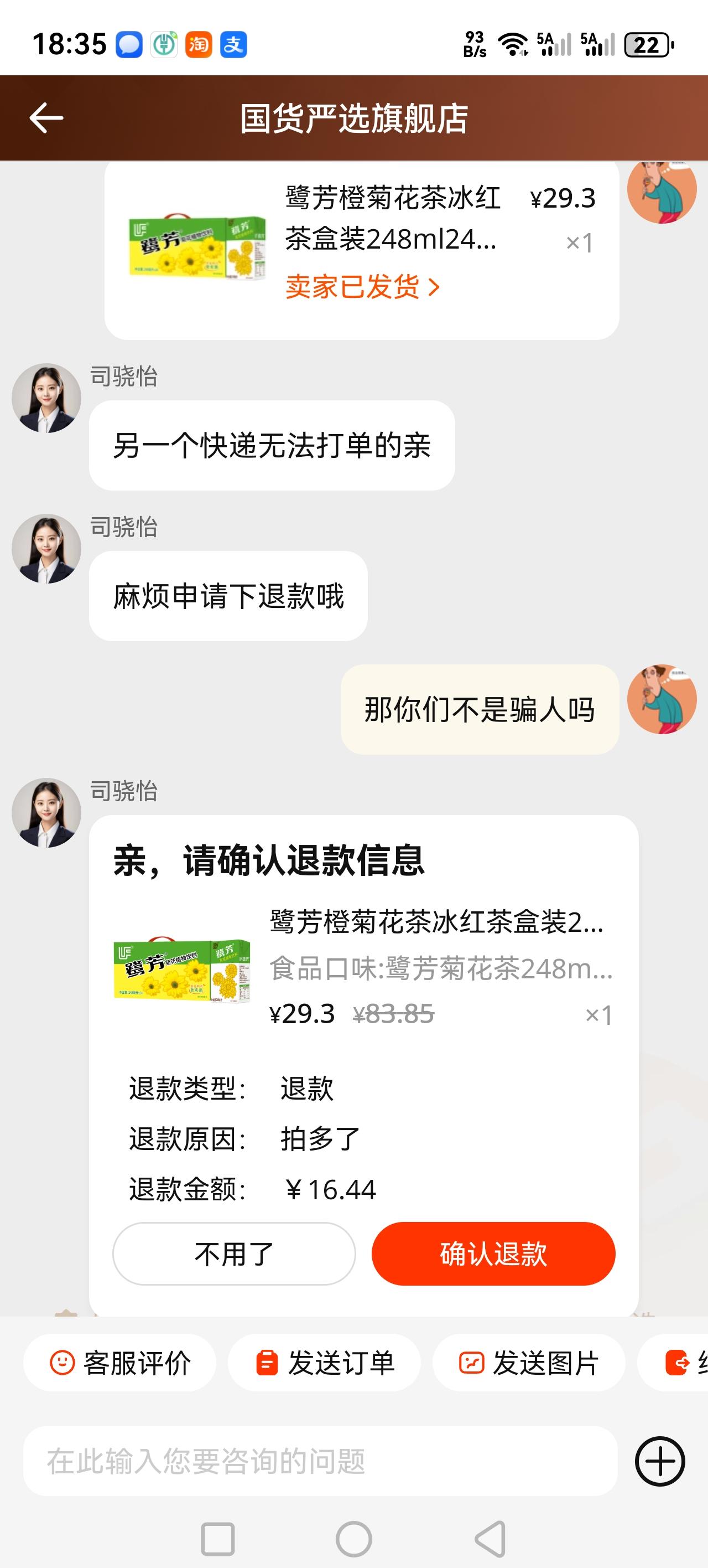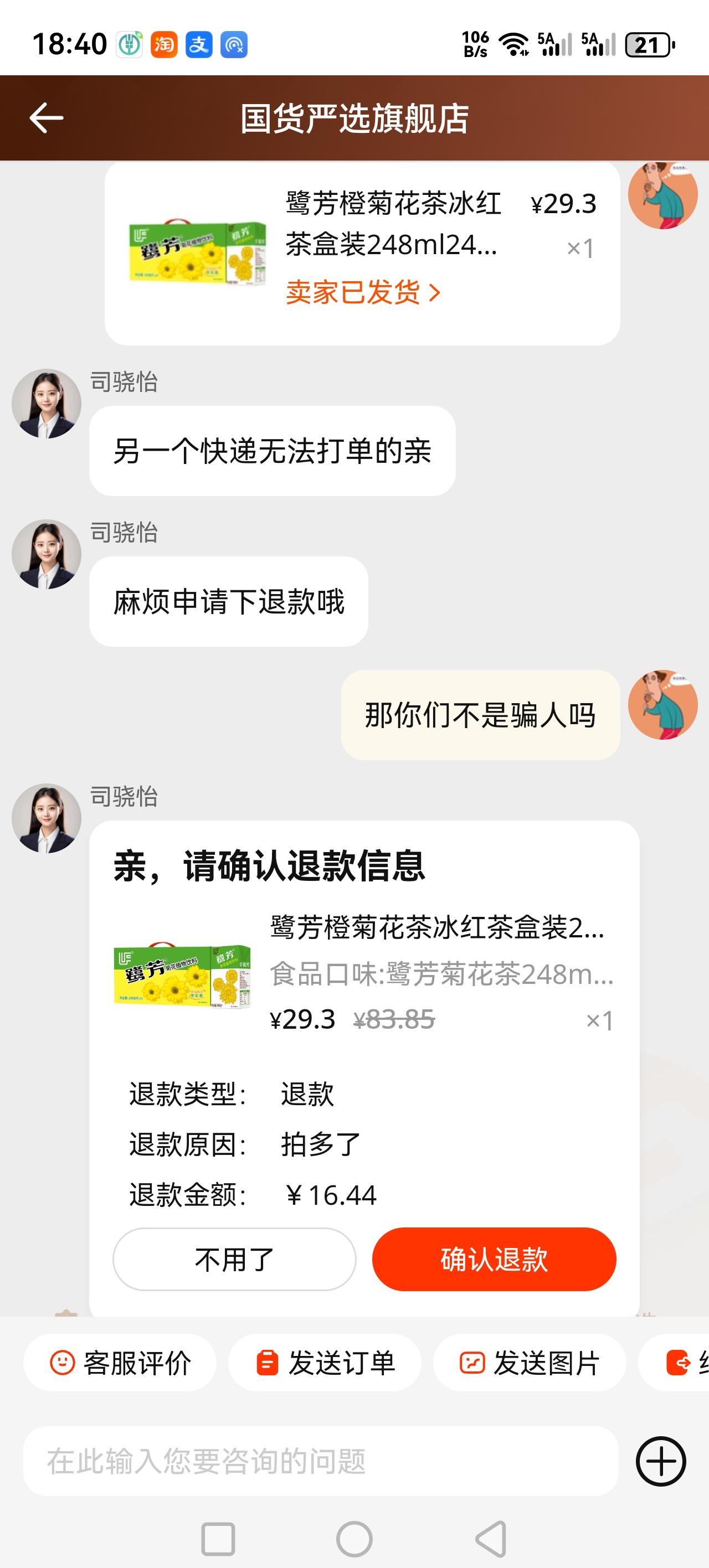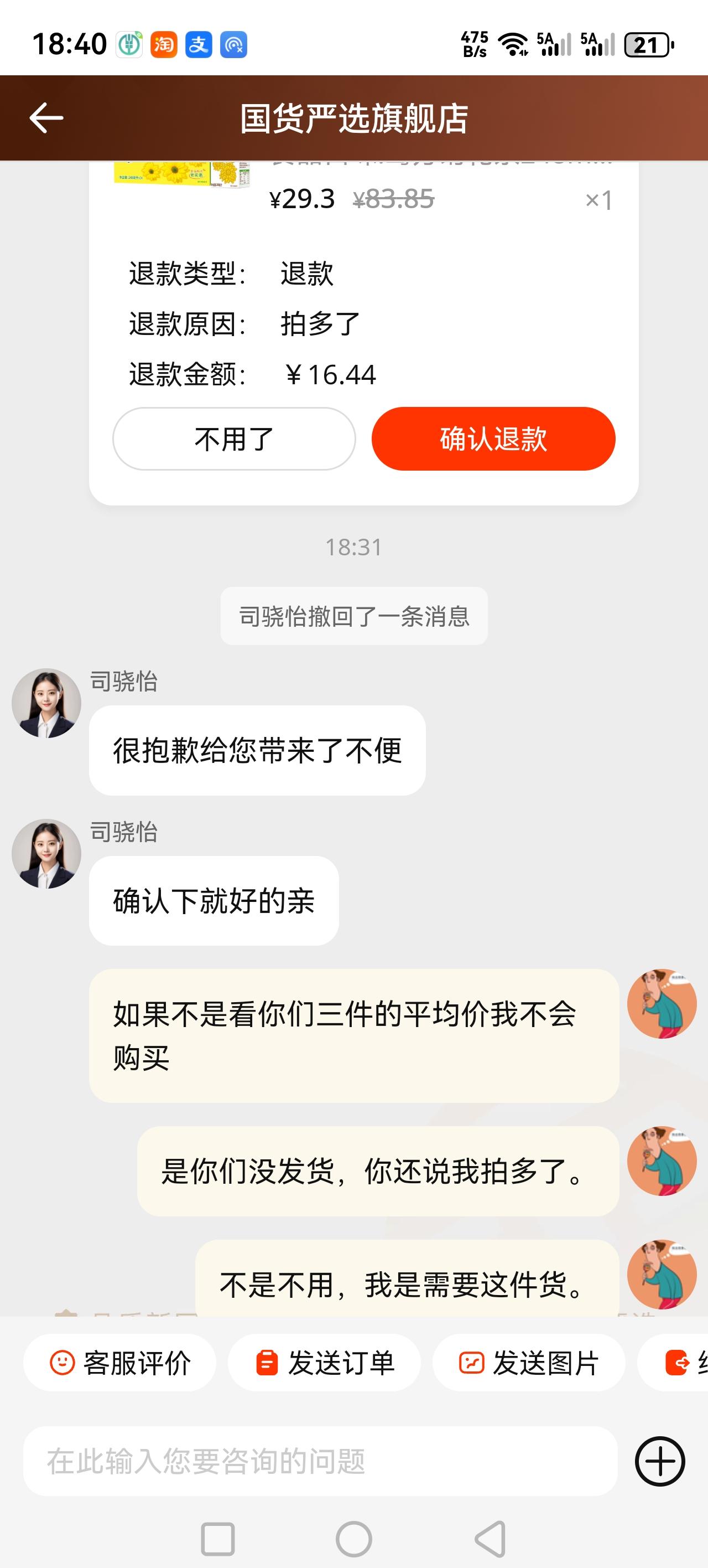 淘宝套路多,不知道淘宝为什么会配合这种骗子公司,一不小心就被套路了,优惠的那一件不发货,把高价的那两件发出来,然后让你退款。