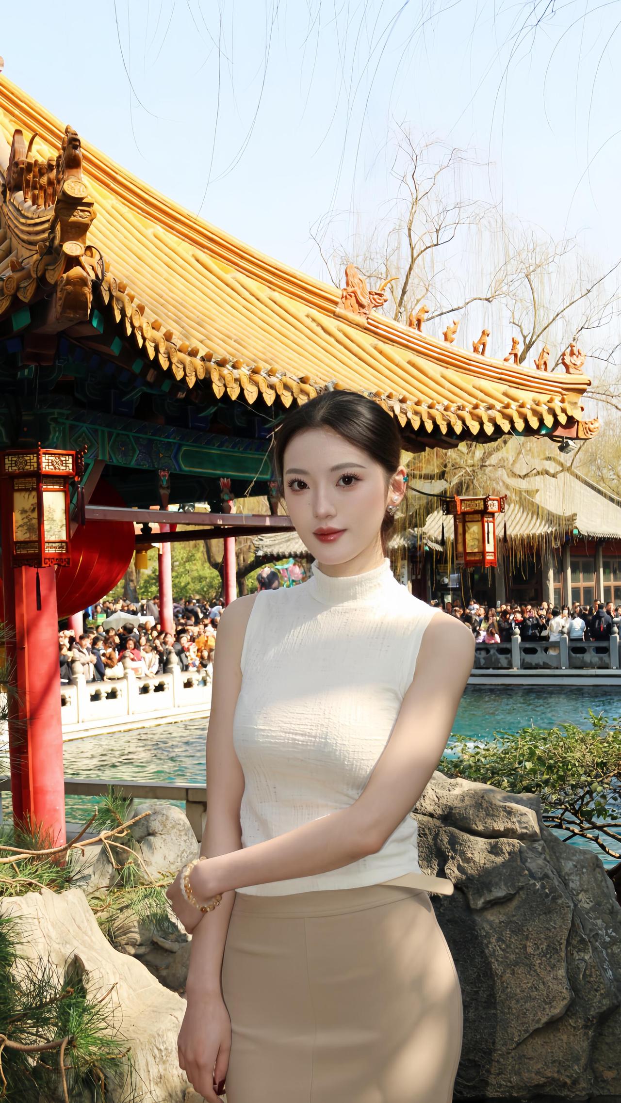 古典园林中的优雅女子,静谧与美丽并存。