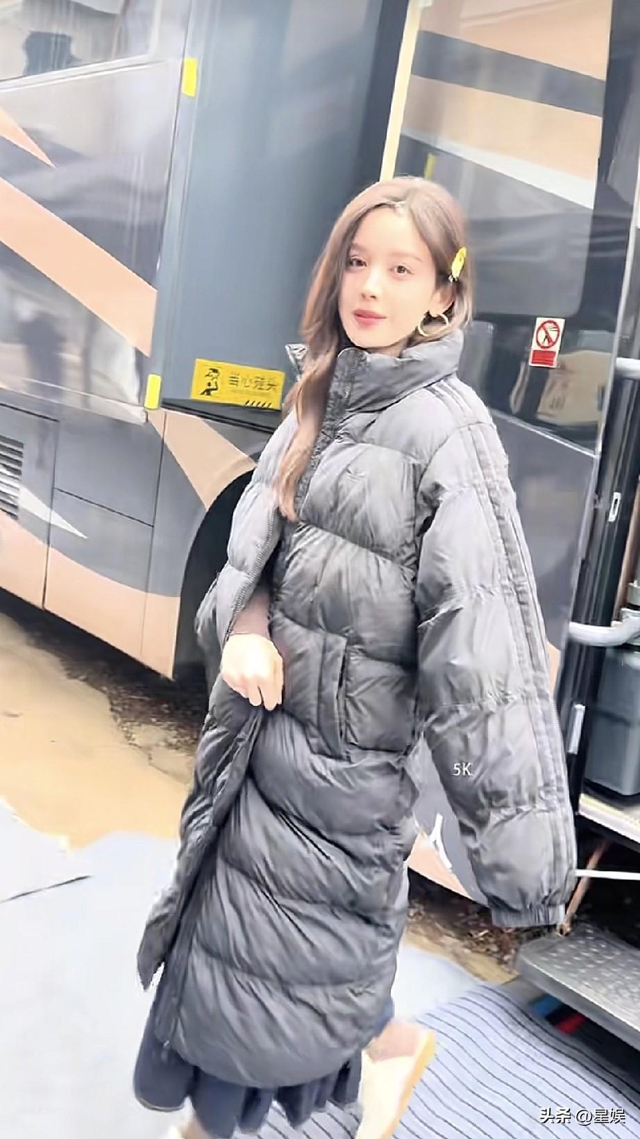 古力娜扎长款羽绒服