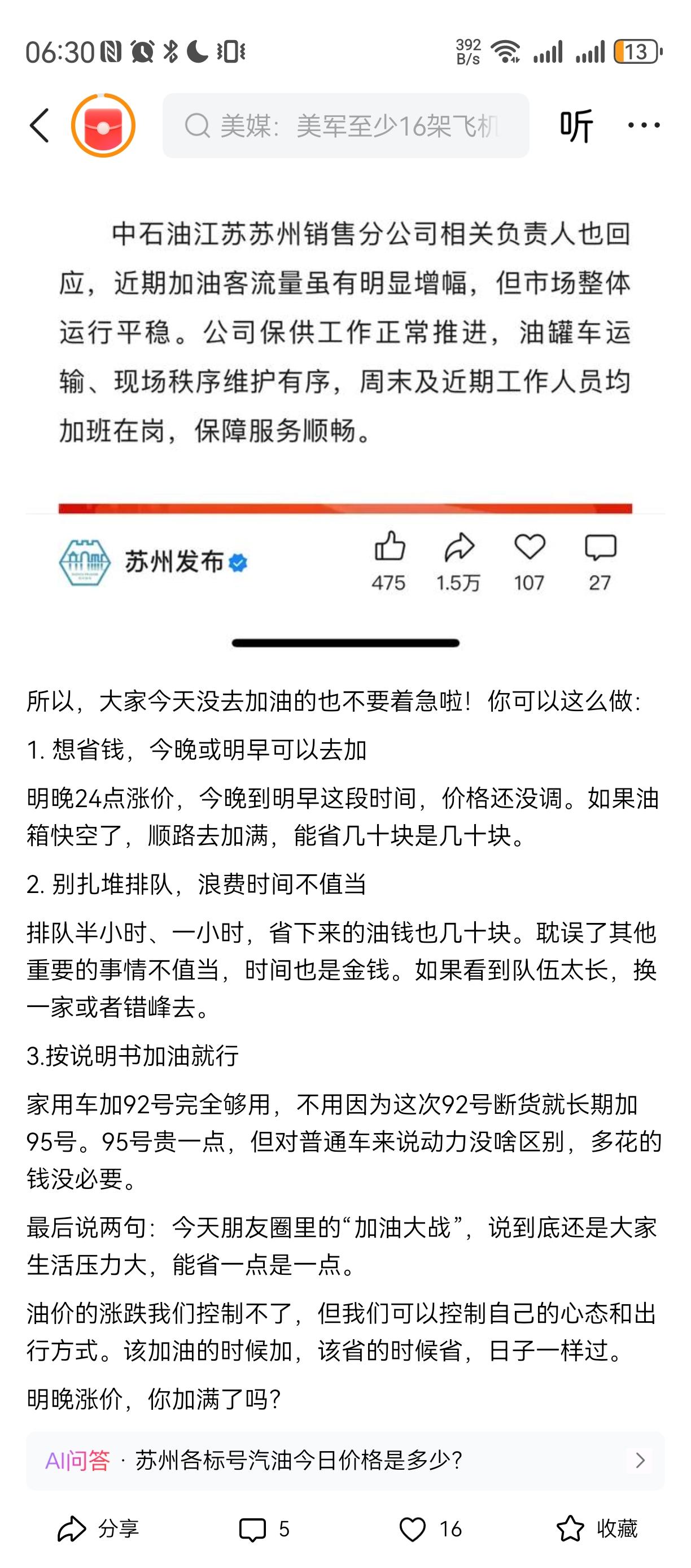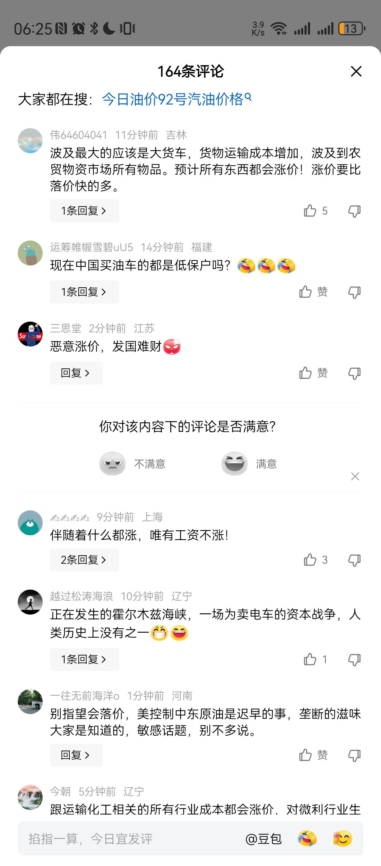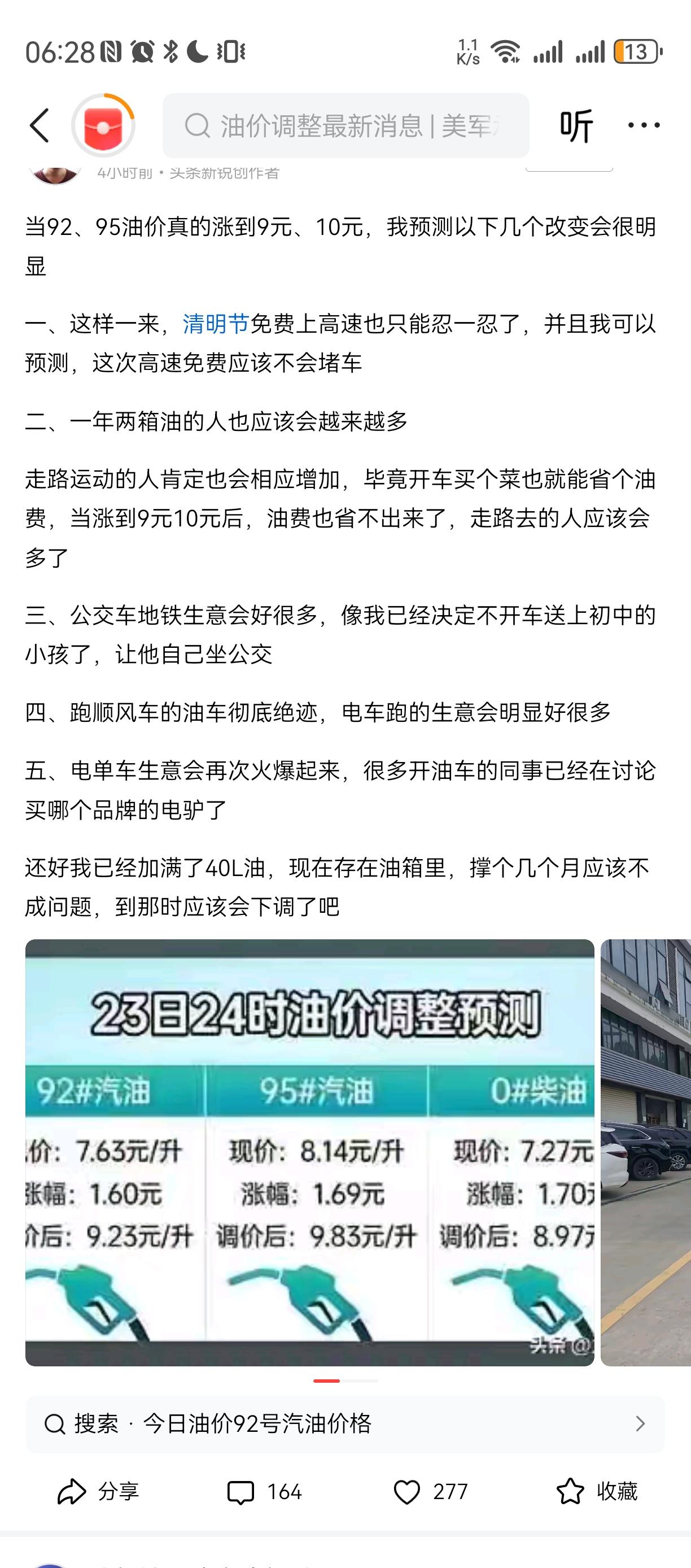 穷的不敢开油车[捂脸][捂脸][捂脸]穷有谁管呢 看起来我的圈还是低端, 好的熟人都决定不开加汽油的汽车, 改换电瓶车,自行车甚至步行, 知道汽油价格稳定下来。。。 其实, 汽油天然气涨价, 后面还有连带很多涨价, 吃喝玩乐住行都要涨。。。。 就工资不涨。。。 今年日子难过哦, 尤其那些开店的。。。。