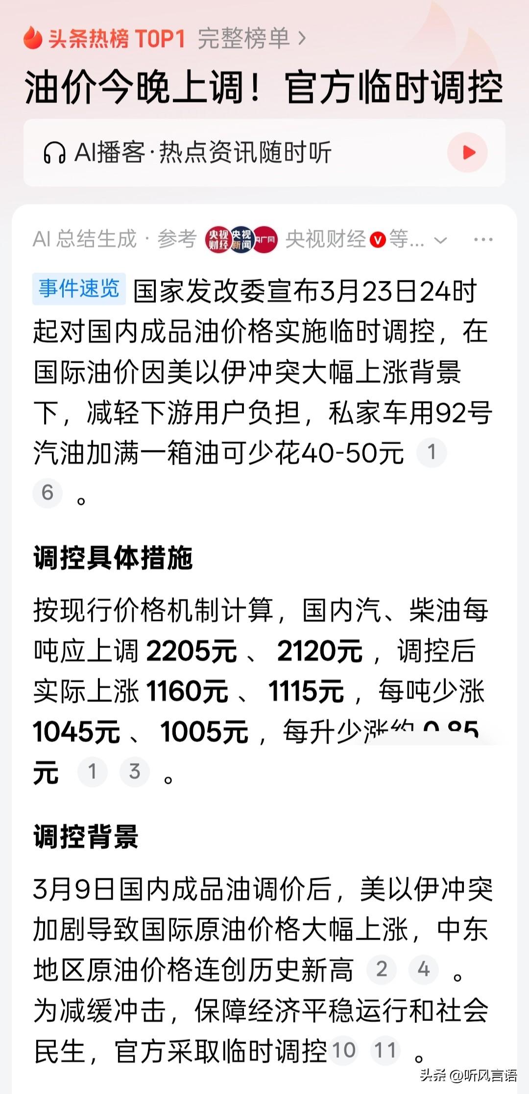 今晚油价上调,但是国家出手了!为发改委点赞!