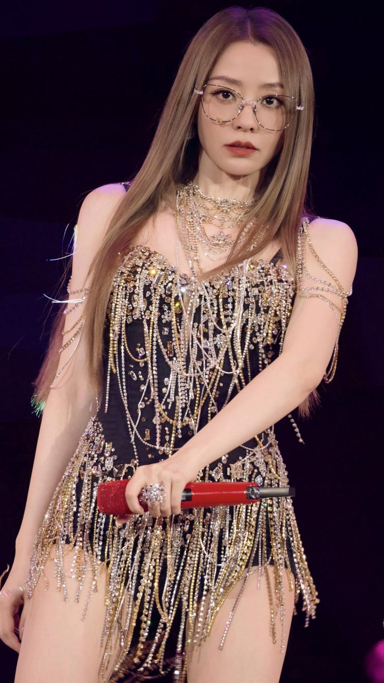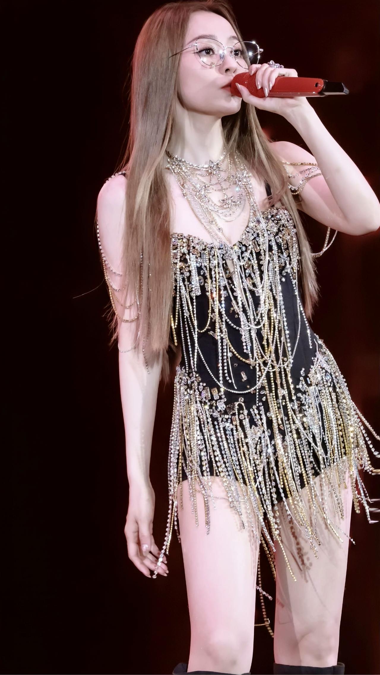 张靓颖演唱会戴眼镜好看还是斯文呢?