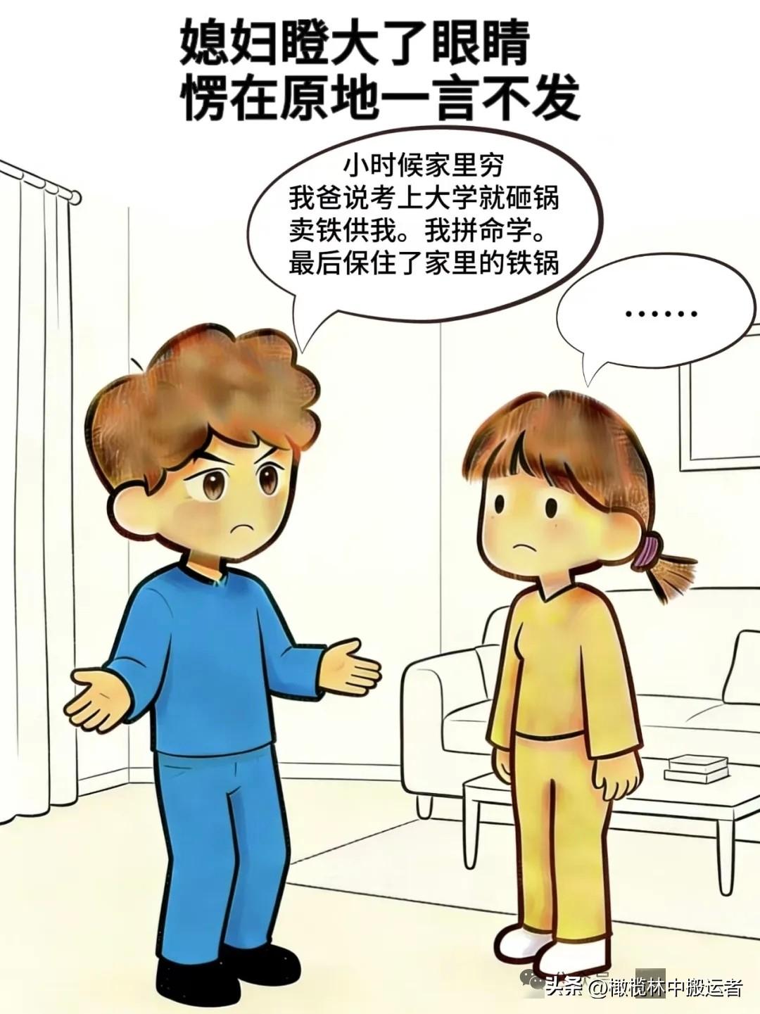 趣味漫画:老婆:问你个事,老公:你问,老婆:你做过最成功的事是啥,老公:小时候我爸说考大学就砸锅卖铁供我,我拼命学,保住了咱家锅