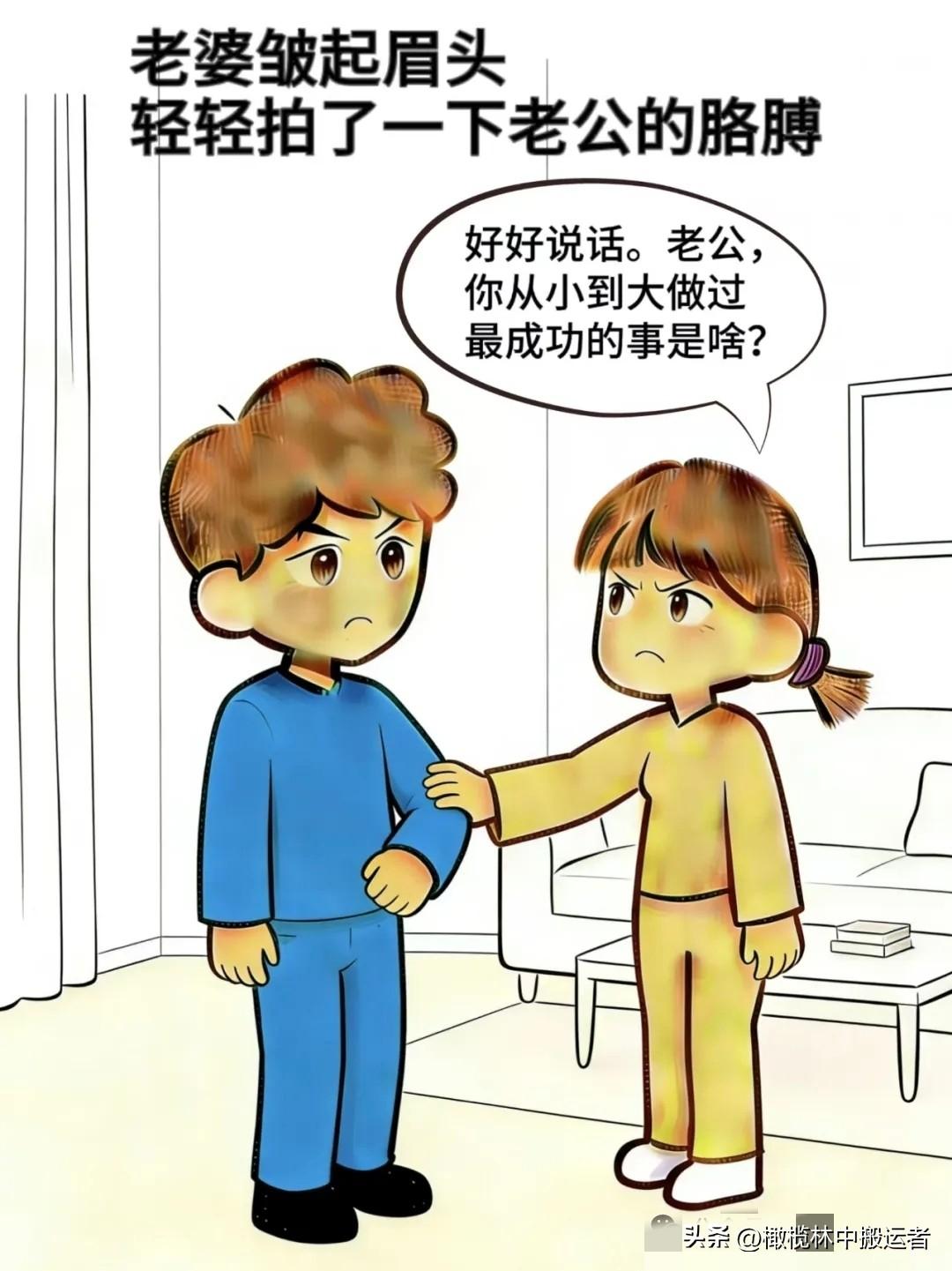 趣味漫画:老婆:问你个事,老公:你问,老婆:你做过最成功的事是啥,老公:小时候我