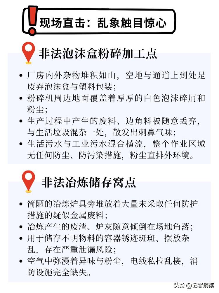景德镇两处非法加工窝点被端,现场乱象触目惊心 近日,江西景德镇市乐平生态环境局接群众举报,在接渡镇城乡接合部精准查处1处非法泡沫盒粉碎加工点和1处非法冶炼储存窝点,彻底消除环境污染与生产安全双重隐患。 两处窝点环境问题突出:泡沫加工点内杂物堆积、粉尘直排、污水横流;冶炼窝点废料随意堆放、电线私拉乱接、消防设施缺失,现场环境脏乱差,安全风险极高。 执法人员当场固定证据,依法查封生产设备、原料与产品,责令当事人立即停止非法活动,目前案件正进一步调查处理。