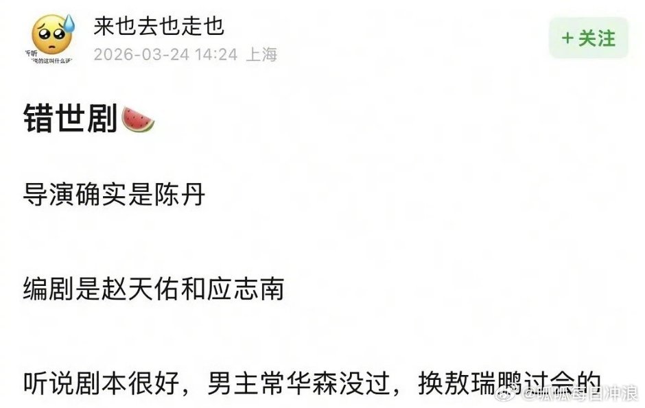 🍉《错世录》男主本来定的常华森,后面换敖瑞鹏了!两个人还合作过《白月梵星》,从