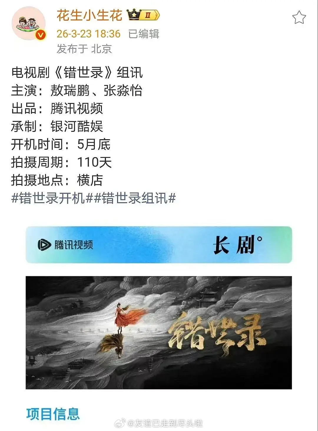 敖瑞鹏是不是回报率很高,能让🐧在寒冬给他开仙侠,这部剧的工作室也靠谱码到男主就过会,全平台今年第一部仙侠
