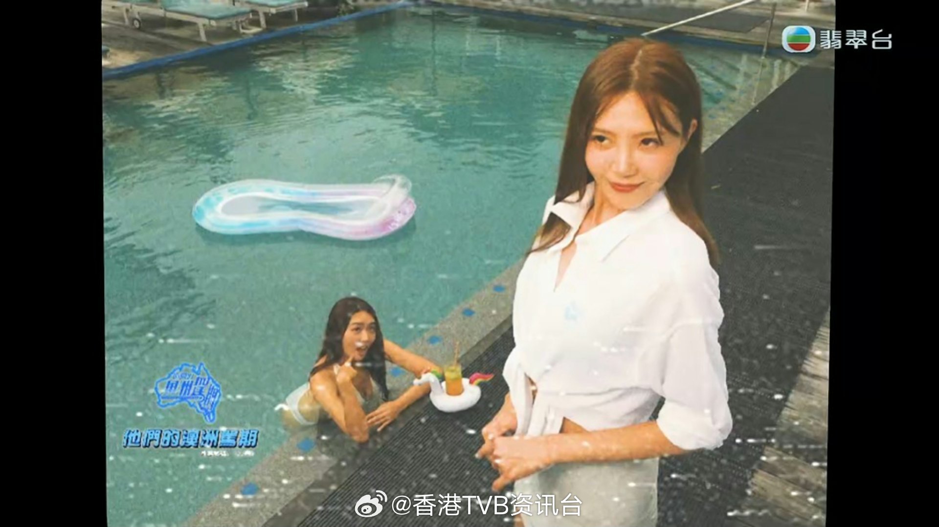 TVB最新综艺节目《他们的澳洲驾期》昨晚(23日)播出丁子朗、吴若希及戴祖仪的部分,三人前往正值夏季的澳洲,泳装环节自然少不了。节目开场便是三人在泳池边嬉戏,吴若希讲述选择去澳洲的原因时,丁子朗和戴祖仪在后方玩水枪,身穿比基尼的戴祖仪突然冲向镜头喊:“好怕啊!”反观吴若希没有穿泳装出镜,气势明显不及戴祖仪。