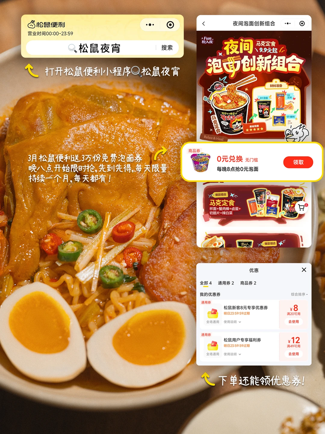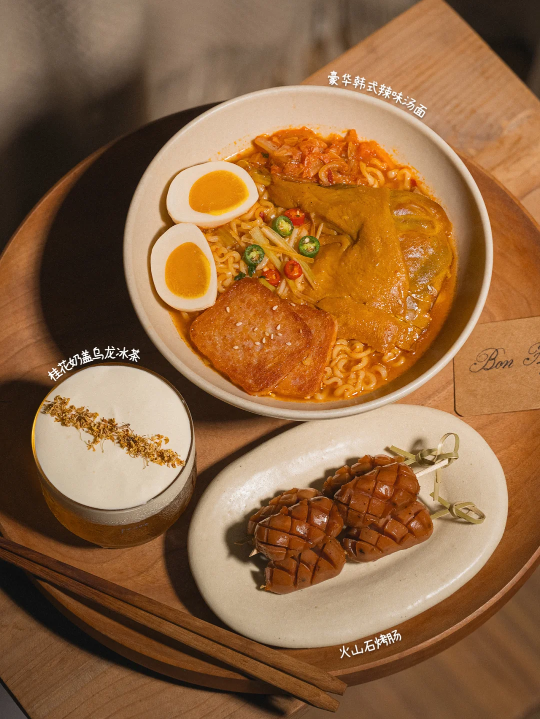 豪华韩式辣味汤面 火山石烤肠 桂花奶盖乌龙冰茶 - 幸福感来源于温饱的重复 毕竟“人生幸事,八九不离食” 就像夜里这一碗面带来的归属感和安全感 只有在入口的一瞬间才会被深深感受 这离不开24小时运营的📱小程序松鼠便利店 让我每晚饿了都能点到不同好吃的夜宵面 还有各种泡面搭子和深夜零食 轻松打造属于自己的深夜食堂~ - 3月开始,每晚8点上松鼠微信小程序 搜“松鼠夜宵”,免费泡面券等你来抢! 深夜饿了不要忘记夜宵吃面上松鼠 让松鼠便利来守护深夜美食的治愈~ -
