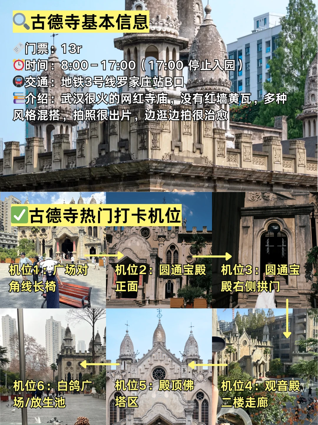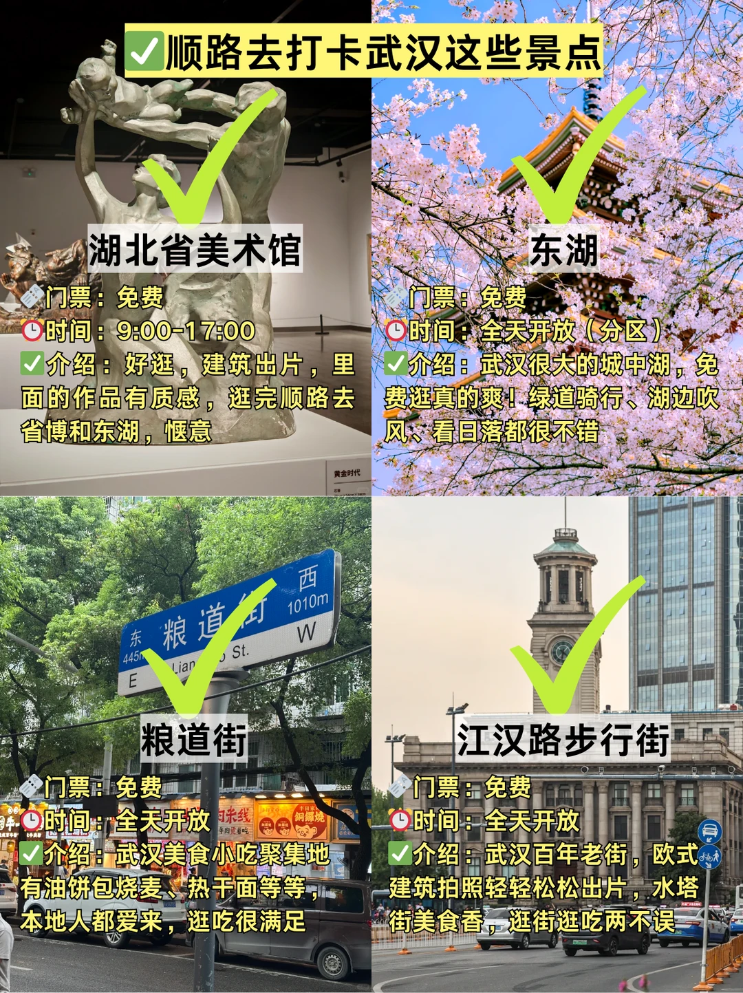 武汉烟火气+高颜值路线被我挖到了!山海关路体验过早,再去古德寺拍大片,有多的时间还能去打卡黄鹤楼这些,晚上看看相声,懒人姐妹直接抄作业~