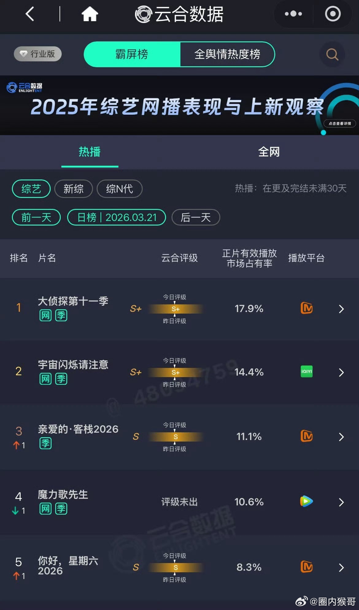 王鹤棣还真的牛诶,不仅剧能吸粉,综艺也能狂吸,播了宇宙闪烁请注意各种登顶综艺平台