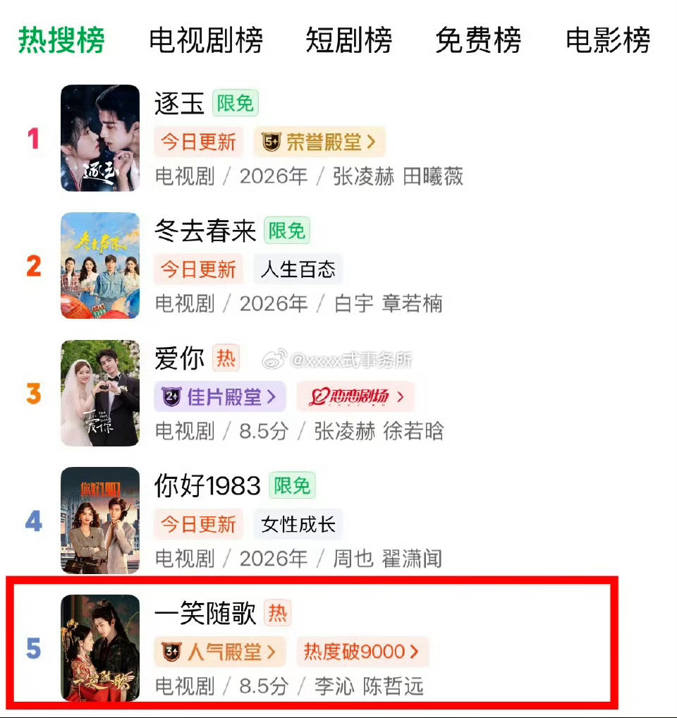陈哲远一笑随歌飙升榜第二,热搜榜第五了