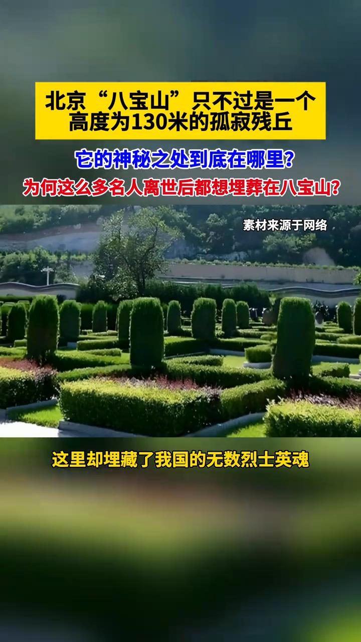北京"八宝山"只不过是一个高度为130米的孤寂残丘,它的神秘之处到底在哪里?为何这么多名人离世后都想埋葬在八宝山? 八宝山位于北京的西山,实际上八宝山只是一个高度约130米的孤寂残丘,这里却埋藏了我国的无数烈士英魂。这座山的神秘之处到底在哪里?为何四海八方的名人都会选择这里? 贺礼,1896-1969。