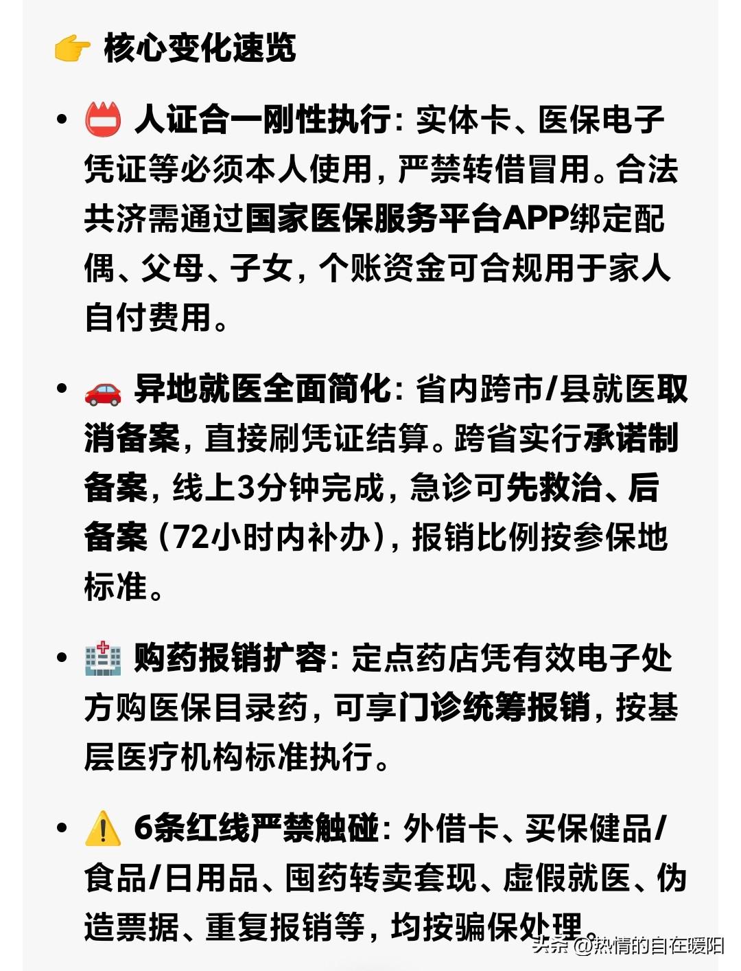 想给孙子买钙锌、维生素AD,赶紧学习学习医保卡新规,看能否用我的医保卡买。 2026年4月1日起,医保新规正式落地,孙子可纳入家庭共济,医保个人账户余额能合规使用。新规明确,职工医保个人账户可共济给多类亲属,包括祖父母、父母、配偶、孙子女、外孙子女。正常参保城乡居民医保,在国家医保服务平台APP完成绑定,就能共享账户余额,盘活“沉睡”账户。 正规国药准字、医保目录内药品,可用共济资金支付,保健品、食字号产品不能刷。药品类非保健品礼盒,可用共济余额结算,但要刷本人医保码。 医保新规便民、安全、公平,家庭共济全国统一,跨省可用,省内就医免备案。监管严格,严禁违规。按规定绑定共济、购买合规药品,4月1日后给家人补营养,安心又划算。医保新规暖人心,守规则,让医保钱花在刀刃上,守护全家健康。