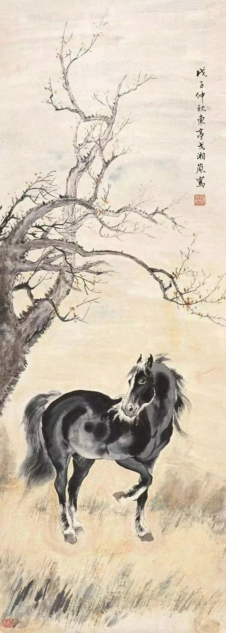 戈湘岚:(1904—1964)原名绍苓,又名荃,别署赏神骏斋主、东亭居士,东台安丰人,定居沪上。戈公振之弟。1920年上海美专肄业。中国民主同盟盟员,中国美术家协会及上海分会会员,兼任上海中国画院画师。戈湘岚15岁即被上海美专以考试第一名成绩录取西画系。1920年从上海美专肄业,进入商务印书馆印刷所学习设计,一直沿用至今的“马利”牌颜料商标即为其20年代的设计。