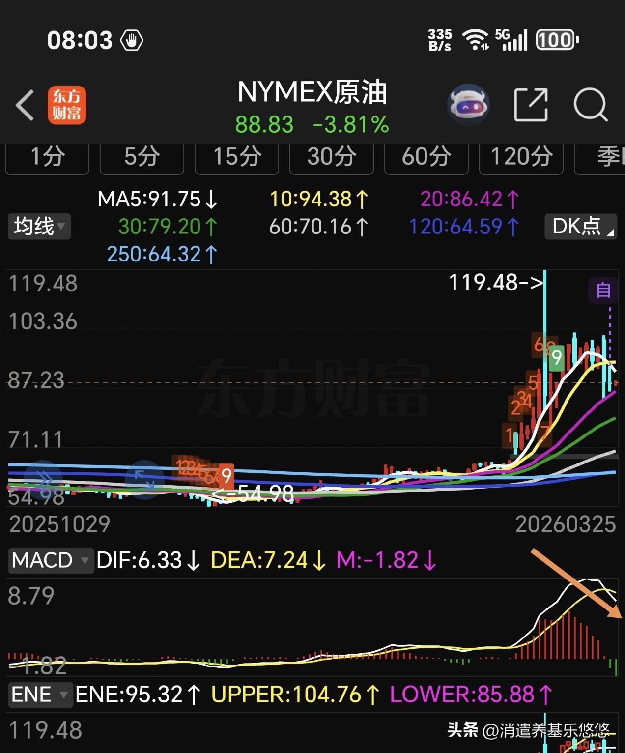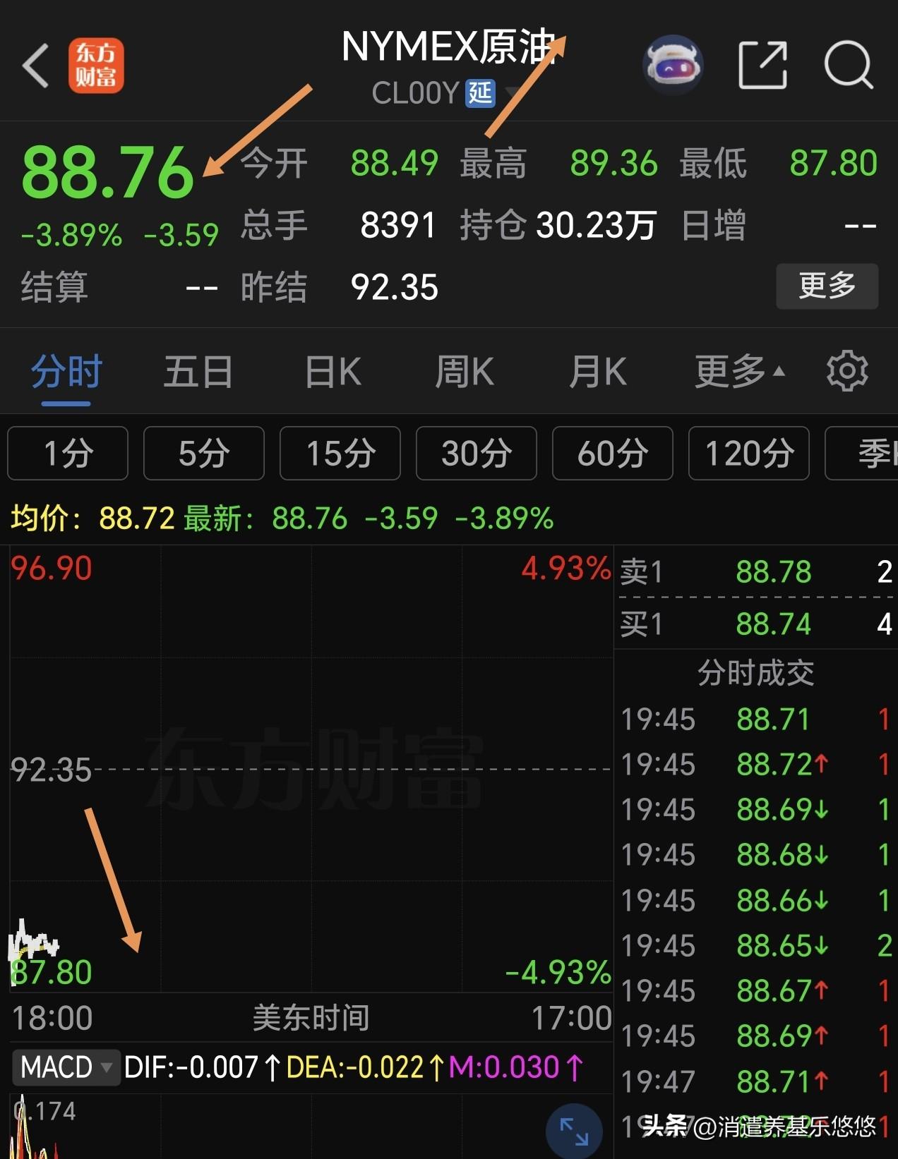 今天有好戏看了,石油最终低下高昂的头,转为下跌趋势,日线macd已经死叉❌,慢慢回归正常价格。与它相反走势的黄金开始反弹,物极必反,8点石油跌幅超3%黄金涨幅超3%,今天A股有色金属板块有望延续上涨。现在,美三大股指期货开盘上涨中,今天大a是冲高回落还是延续上涨?