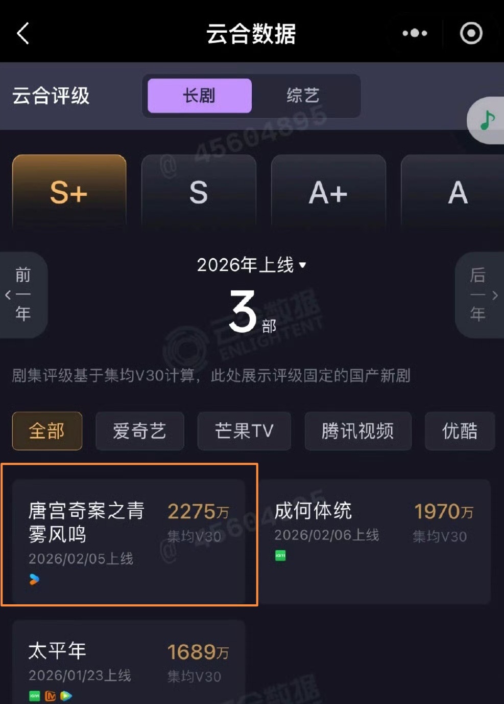 恭喜白鹿《唐宫奇案》再迎佳绩!云合V30集均一路攀升至2275万,成为开年来唯一一部集均破2000万的剧集,同时灯塔集均数据持续上涨,达到3160.6万,口碑不断深度发酵,长尾效应直接拉满,后劲太能打!《唐宫奇案》能跑出如此亮眼成绩,核心全靠白鹿撑住全场。剧集热播期间,官方宣发几乎没太多动作,全程宣发全靠白鹿手搓输出,没有铺天盖地的营销通稿,全是她亲力亲为扛剧宣,红毯持剧扇为剧集造势、日常营业疯狂输出物料,就连行程爆满时也不忘熬夜追剧和观众互动,靠着一己之力把剧集热度一点点攒起来、推上去。剧外白鹿,剧内李佩仪,李佩仪这个角色被白鹿演绎得鲜活又立体,不管是高能探案的利落戏份,还是情绪饱满的走心名场面,个个都堪称高光,角色魅力直接拉满,牢牢抓住观众的心,让剧集靠着角色口碑不断吸粉,越播越火。白鹿用细腻有张力的演技赋予角色灵魂,把李佩仪的人物特质演得入木三分;李佩仪这个立体出彩的角色,也反过来成就白鹿的表演口碑,演员与角色互相成就、彼此加持。没有强力宣发护航,却凭白鹿的用心与真心,以及角色的扎实出圈,妥妥的开年剧圈实力黑马!